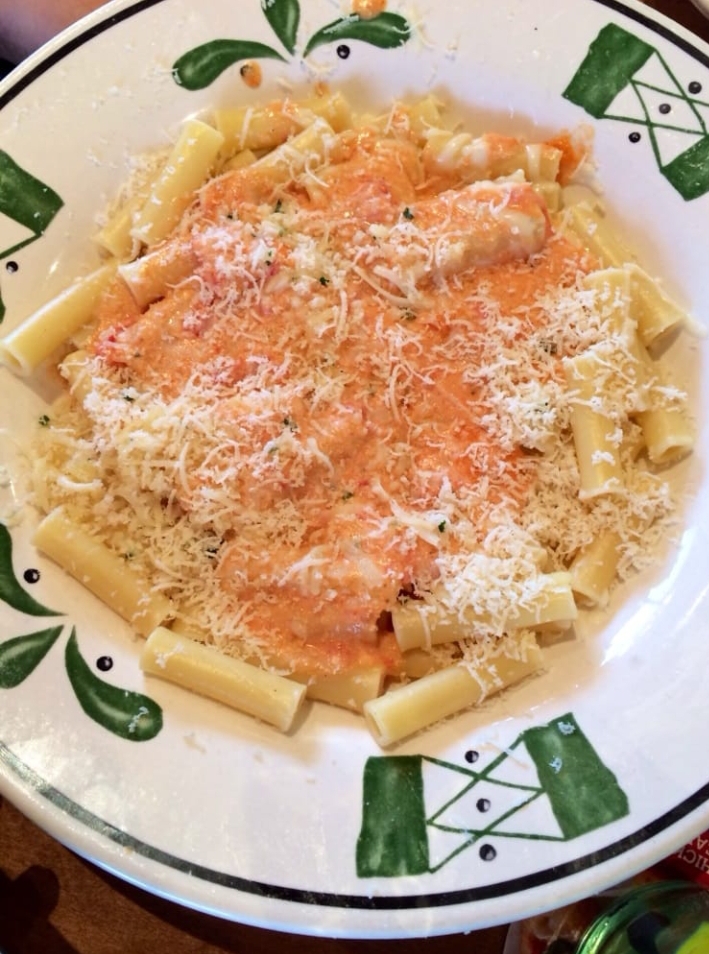 The food was very standard olive garden fare: salad, bread sticks, etc. My family was interested in getting this as our late meal as they had brought back the endless pasta as a promotion.