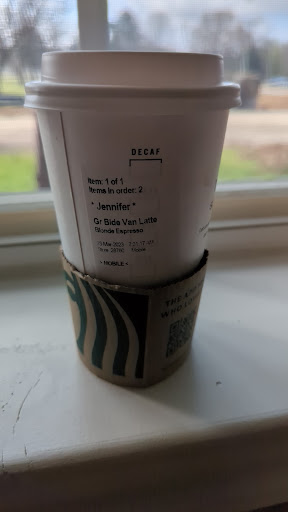 Edit: Review was written while still frustrated and it shows in the spelling and grammar. My experience there was frustrating. I placed a mobile order as soon as I parked for a customized venti Pike Place coffee. I waited a few seconds and walked in because coffee rarely takes more than a few seconds. I walk in and walk to the mobile order area to look for my coffee. I do not see it anywhere so I stand around waiting for about 10 minutes. I thought they were brewing some Pike. Finally, one of the guys notice me waiting and asked me what I was waiting for and I tell him I have a mobile order for a Pike Place. He starts to get it but one of the girls steps up and pulls my coffee out from behind the short wall on the counter where it has been hidden the whole time I was there I'm guessing. It was in the very corner of the short wall so it couldn't be seen from either side by the customer looking for their order. I'm not sure what the purpose is in hiding there customer's mobile order is exactly. The Starbucks on Main St. puts it where you can see it and get it and go. By then I'm irritated and they give me a coffee cup with no sleeve so now I start looking for the sleeves. I don't see them on the counter anywhere so I go look where the sugar and creamer is. It's not there either. After irritably walking around the store with my coffee, which is actually lukewarm and didn't need a cup sleeve anyway, I finally notice that they have the dispenser on the counter on their side. At every Starbucks I gone to cup sleeves are openly available without resorting to reaching across the counter or begging for one. So I reach across and tear one out of the dispenser. Now of course I didn't actually need one of course because my coffee is lukewarm but I like to have one as a barrier so I don't get anything sticky on my hands. And I don't appreciate having to put that much effort in a transaction that should have been effortless. I should have walked in and my order should have appeared in a spot that customer can actually see and pick up my coffee and be able to grab a cup sleeve and go. Also I would figure if a customer walks in and immediately goes to the mobile order area or in that general area and doesn't go to the other end to place an order then he must have the mobile...