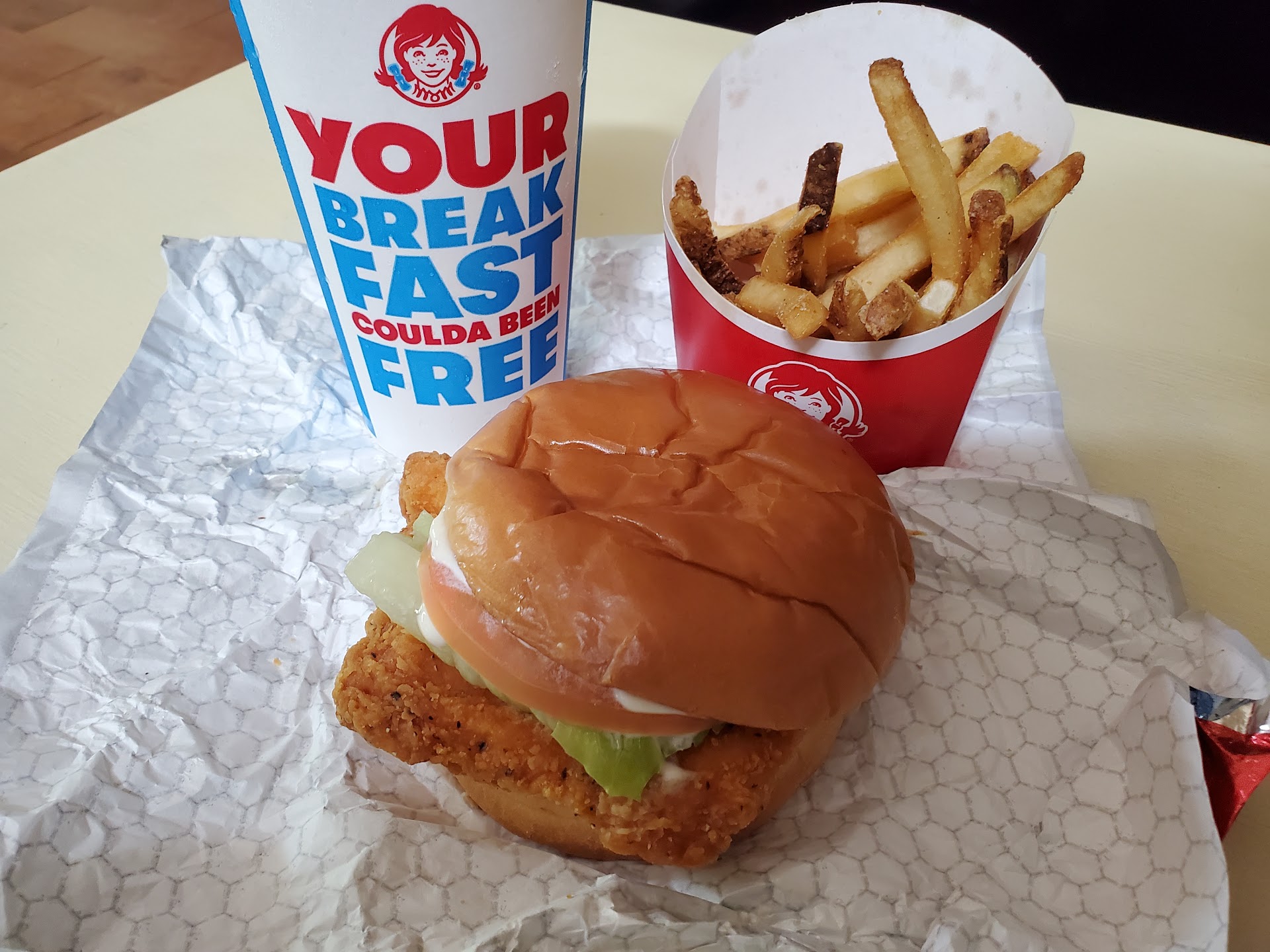Read moreI ordered a spicy chicken sandwich combo w/fries in the drive-through. Waited about 25 minutes with 4 people in front of me for my meal. The order was correct, but the fries were scarce and overcooked. Nicely Salted, though. For just shy of $9, I expected more. No ketchup or napkins, and the sandwich had been made for long enough for the lettuce to be wilted and soggy enough to have to remove. The window workers never spoke to me, just pushed my bag out the window and closed it quickly. I know employees are hard to come by right now, but a smile and a friendly word after sitting in a drive-through for at least 3 times as long as it should would have sent me off much happier.