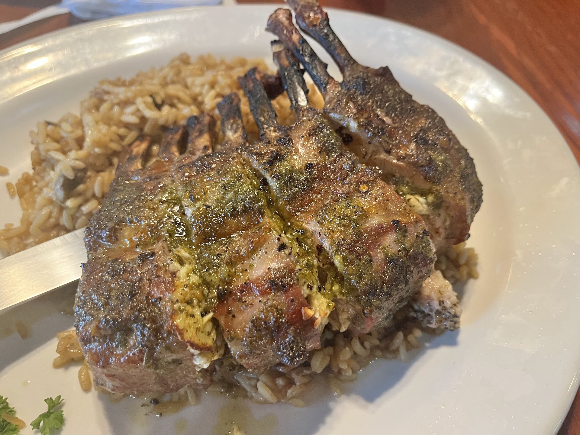Read moreWe always dine here for dinner and enjoy a delicious meal. The chocolate martinis are the best, dinner steaks with loaded bake potatoe. Is the best in town. We brought our out of town guests for lunch this time. From the salad, the rib eye steak and fries to the cream brĂ»lĂ©e cheesecake and bread pudding for dessert we werenât disappointed. My friend had the calamari sandwich which was tender and prepared perfectly! I donât order steak anywhere else. Service was attentive and a pleasant experience overall! Update may 2023. We dined here for dinner tonight. We both ordered the 9 oz ribeye, my husband had rice, I had baked potato. Let me say the chef tonight was excellent in preparing the seasoned steak, one with added mushrooms the other with added grilled onions, the salad with blue cheese crumbles and the dressing on the side, the grilled shrimp appetizer with the tasty rice were all so delicious we commented on them all night. The dirty Bloody Mary cocktail was excellent with just the right amount of heat. Please give compliments to the chef on Friday night before Motherâs Day! Had rack of lamb tonight and it was tender and...