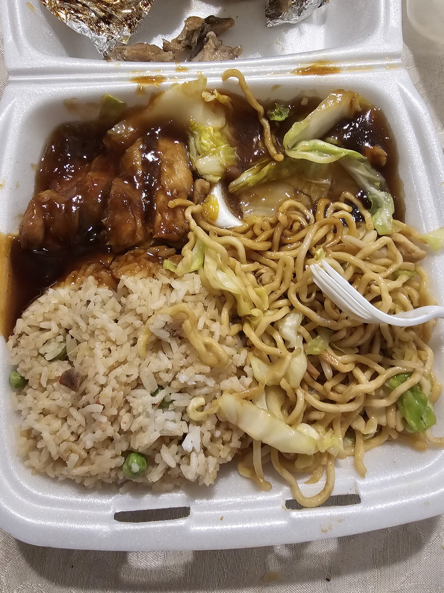 The garlic chicken was soooo yum. 9.5/10 Chowmein 8.8/10 Orange chicken 6.7/10 could be more orangie Fried rice 6/10 seemed...mushy? Kind of seem like white rice with fried rice ingredients but the rice wasn't freed all the way it was still yummy and had a good flavor I think this guy was just long enough