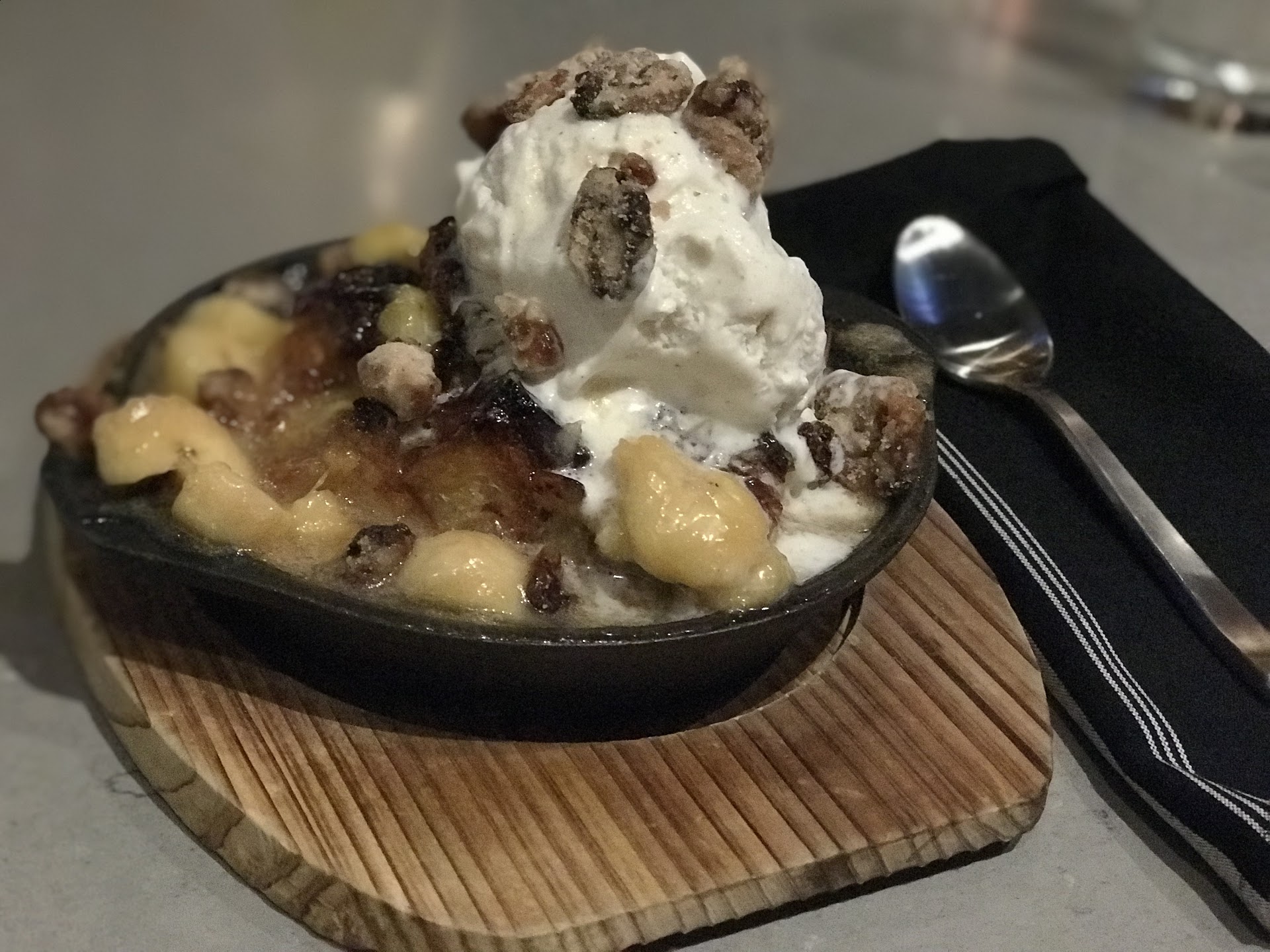 The bananas foster bread pudding was recommended for dessert (Lauren, server). It did not disappoint. Warm vanilla ice cream with Ooey gooey goodness of bread pudding. The warm and cold, the way it melts in your mouth with every bite. It’s a big serving size but a great size if your wanting to share something sweet at the end of your meal with your date.
