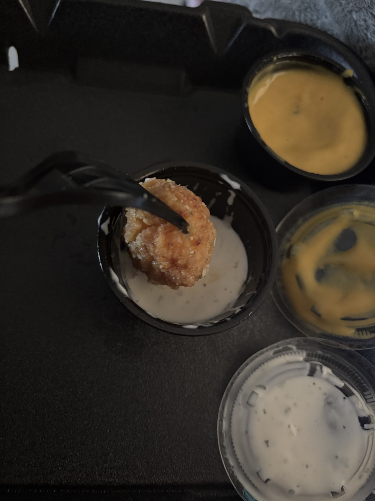 My son is very picky when it comes to fast food and very picky about his chicken. He loves the fry's here which he doesn't usually eat much of. He said the chicken is his favorite in Turlock now lol but isn't better than Monterey chicken he said lol he got the 3 piece combo meal. He opted to get the sauces on the side so he could dip them and mix them if he wanted. He got mango habanero and Thai chili I believe. He loves the mango habanero more than the other. And he also dipped in ranch. He's only 6 but love spicy stuff, he said the sauces weren't spicy to him. Personally they both taste tangy and sweet not spicy. But we have a high spice tolerance. It is a bit pricey here but I think it's worth it for the quality of food and service. Which leads me into how the service here is. I doordash full time and have been picking up orders from here since they opened. They have always been very nice and friendly and very helpful also. The location is good but not the best for good phone service. It's a shotty area for that. But I highly recommend over Wingstop for every single reason. They're also 10x faster than Wingstop even when their busy as hell. And waaay more to choose from as well! I LOVE their garlic...