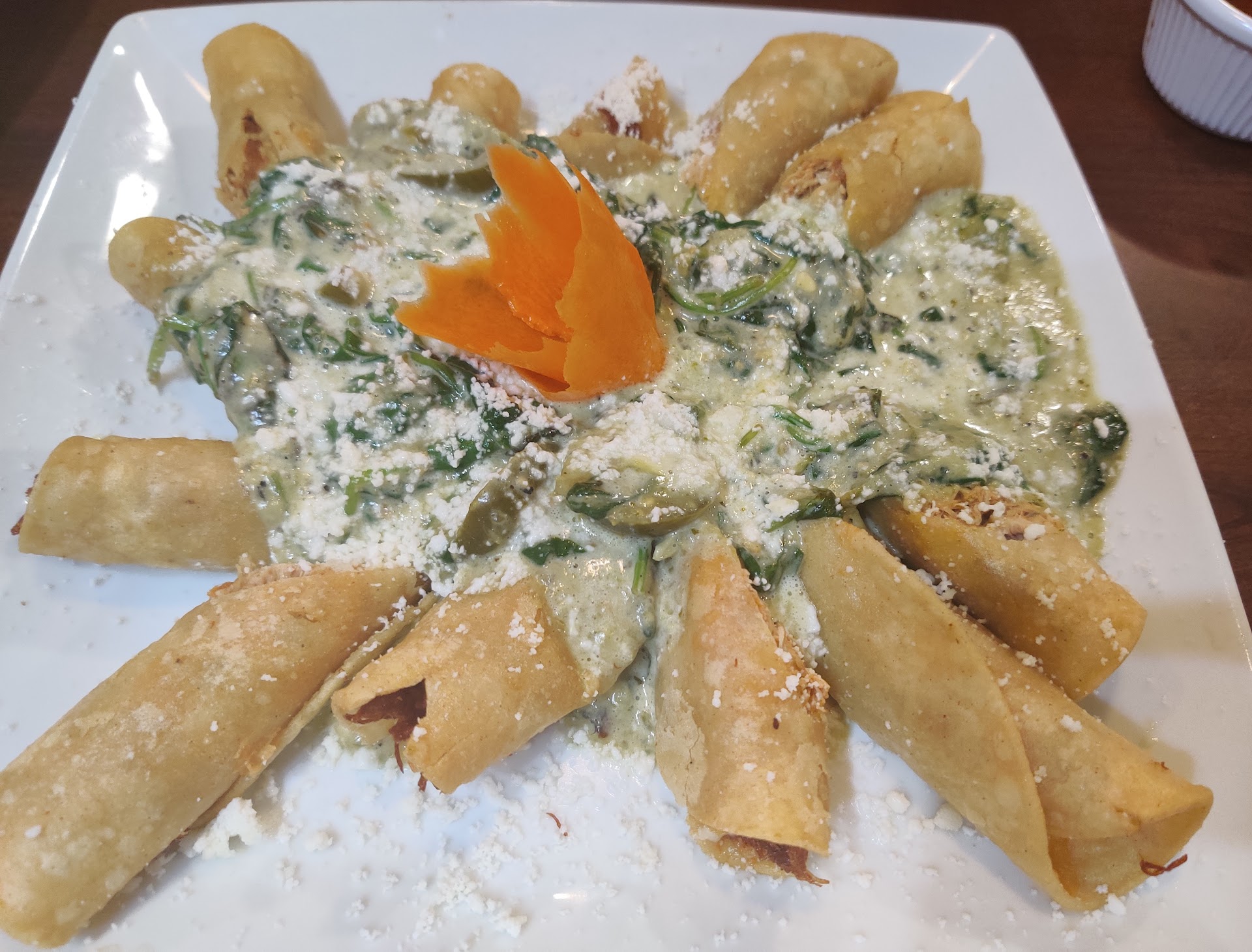 My family and I visit often. They know us when we come in as well as our usual orders. They pay attention to detail and know our usual order adjustments. Tonight I wanted something different but nothing was speaking to me. I love their Jalapeno Shrimp with that creamy jalapeno sauce they use. I asked if they could give me an order of taquitos with the same jalapeno cream sauce on top. They made it happen and it was absolutely perfect. Salsa is on point every time. I've yet to have a disappointing meal from this restaurant and I don't foresee myself ever having one. It's hard to find a place that will make what you want in your mind happen on the plate despite the fact that it's not on the menu. Go there, try this, and you won't be disappointed!