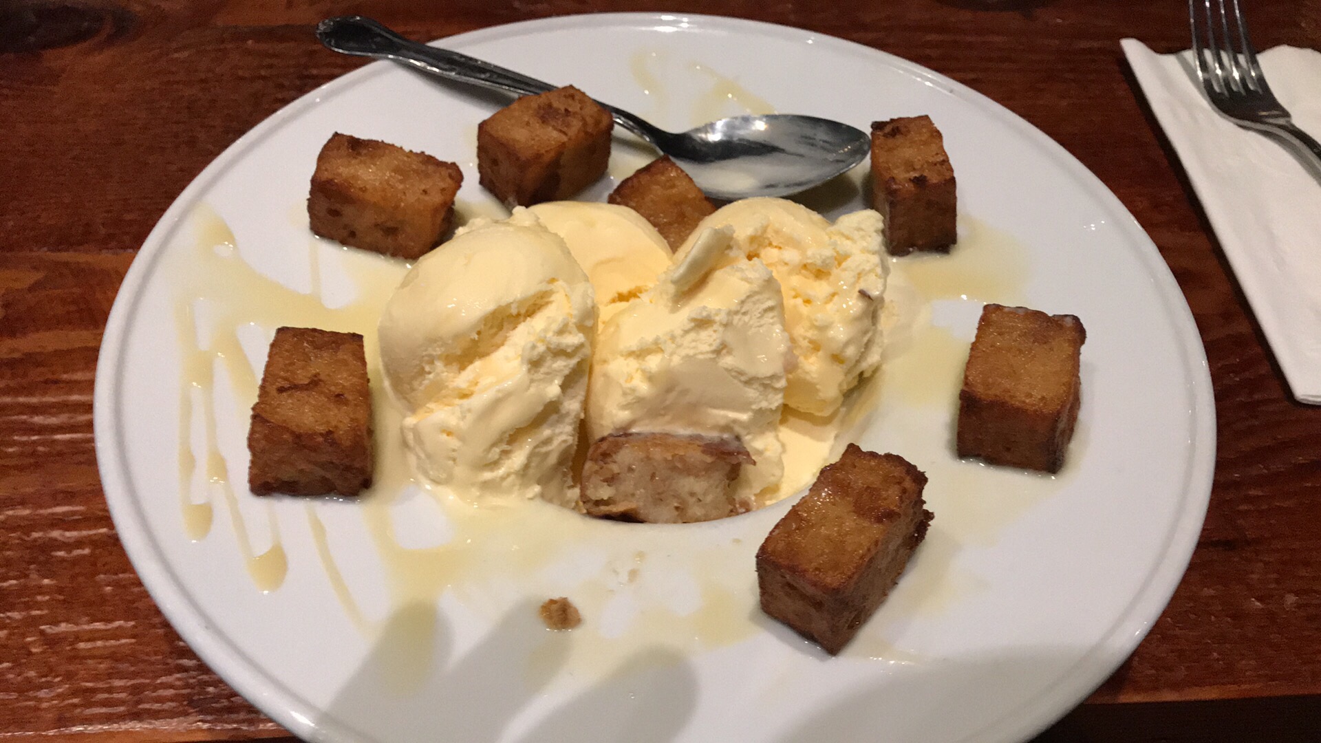 The 'breaded pudding'...I thought it was a typo or possibly that they were once again trying to be 'fancy' with their take on bread pudding which just happens to be one of my most favorite deserts in the entire world. The 'bread' cubes seemed like they were something that you would buy at Walmart in the frozen food section....like french toast bites or something and the ice cream was not particularly high quality. Anyway it seemed like the 'bread' cubes were microwaved and haphazardly thrown in a bowl with some discount ice cream and served. I have never felt so insulted in my life when I saw what was supposed to be their take on my most favorite desert ever. It's an absolute disgrace.