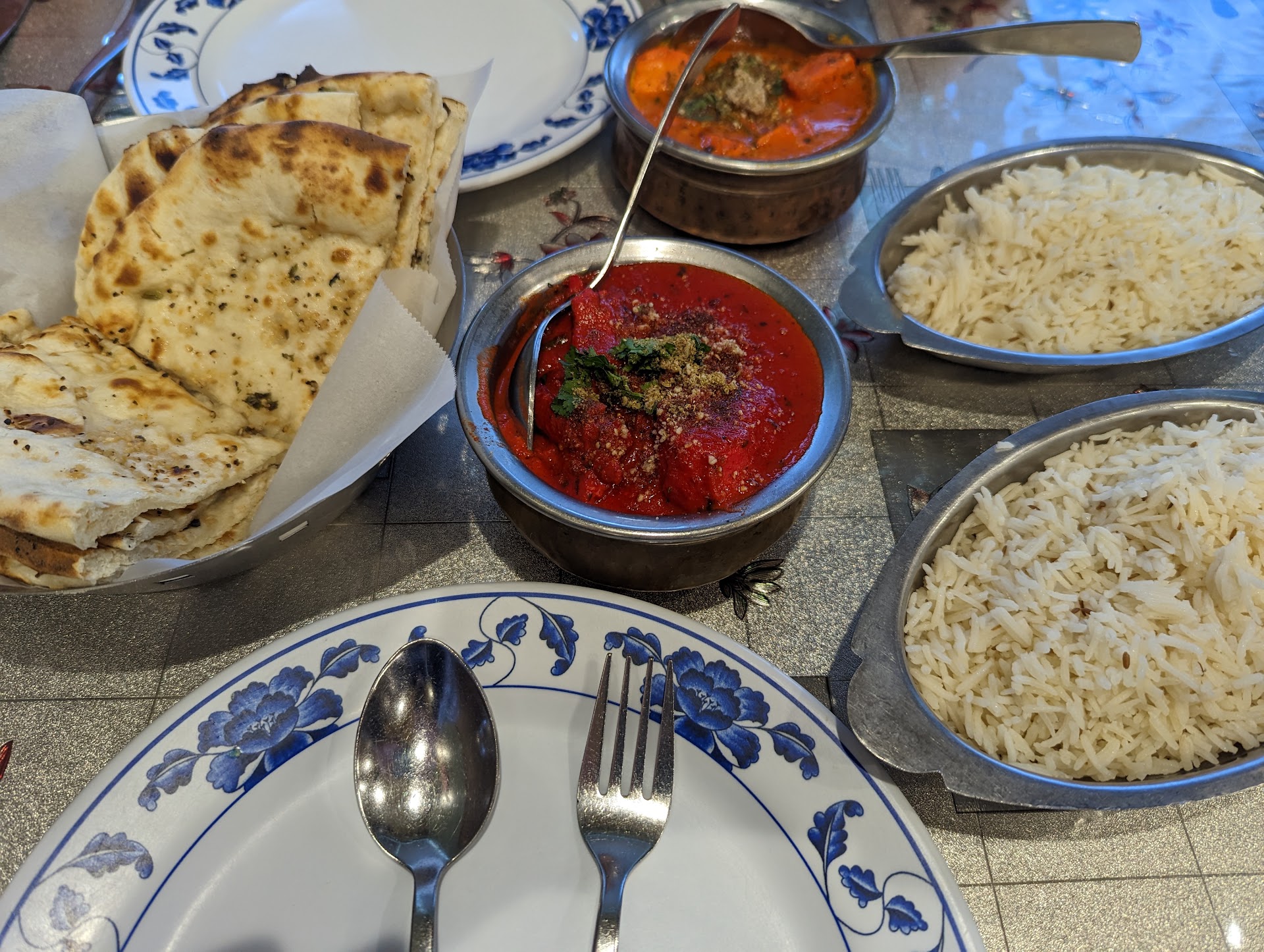 This visit we had butter chicken and chicken tikka masala, both dishes come served with basmati rice. Also two orders of garlic naan bread. It is the freshest naan bread I've ever had, I'm willing to bet it's made daily in house.
