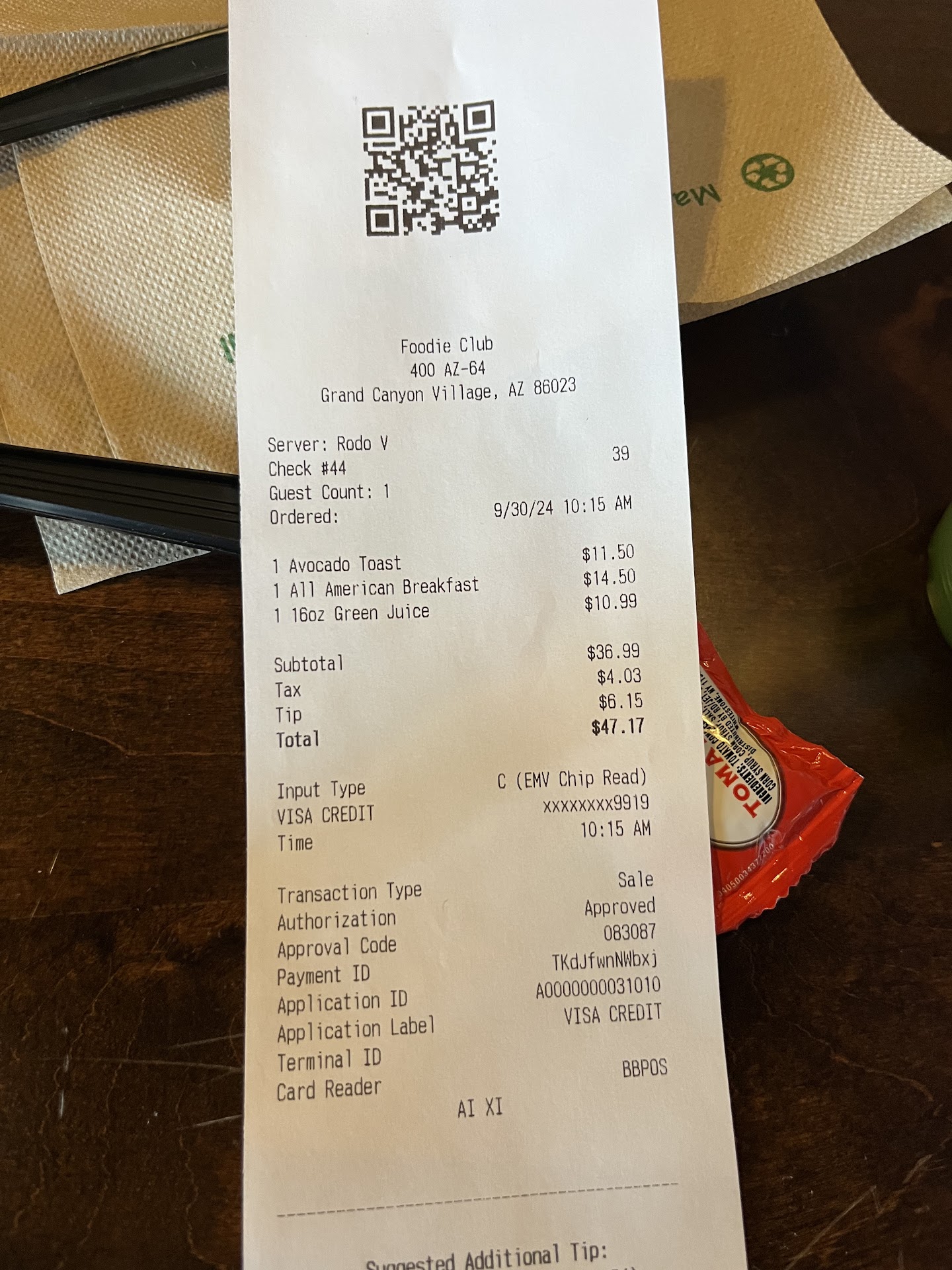 This place was overpriced, very bad quality food. I had five people with me and we spent $100. I had the burger which was dry on a pretzel bun. Two people in our party had spaghetti which looked like just normal spaghetti noodles and a can of spaghetti sauce. We had to go back up and ask for more spaghetti sauce because they were very skimpy. They gave us two very small containers that would be like a size for a ranch dipping sauce. One of the children, 14 year old, that was in the party had a chicken sandwich that he did not finish and thought that it was gross. Positive side to one item, is that we had jalapeno poppers which were good, but I think they were just frozen from Cisco or another food distributor and all they did was deep fry them, so it wasn't that spectacular of a feat. There was no ketchup, mustard, mayonnaise on the items. Had to wait in line again to be able to get ketchup, mustard and mayonnaise and also wait in line a second time to get more sauce for the spaghetti. The fifth person got a meatball sandwich and also thought that it was skimpy on the meatballs, mostly bread, little sauce and not very good. No fries came with the meals, and each meal was over $13 each. We ordered the fries separately for $5. The spaghetti was $13 roughly, The burger was $12.95 I believe. The garlic bread that you see in the picture was just a piece of toast with no butter no garlic on it, it looks grilled kind of nicely though. There's not a whole lot of choices in that local area but if I could save you from spending that much money I'd go to Wendy's or McDonald's. on our way back home to Phoenix we stopped at a Italian restaurant that was on Diners Drive-Ins and Dives. We got three 12-in magnificent pizzas, two individual plates of pasta, two glasses of wine one glass of beer. Two cheesecakes. It was $15 more than foodie club. If you're passing through Flagstaff on your way back from Grand Canyon check...