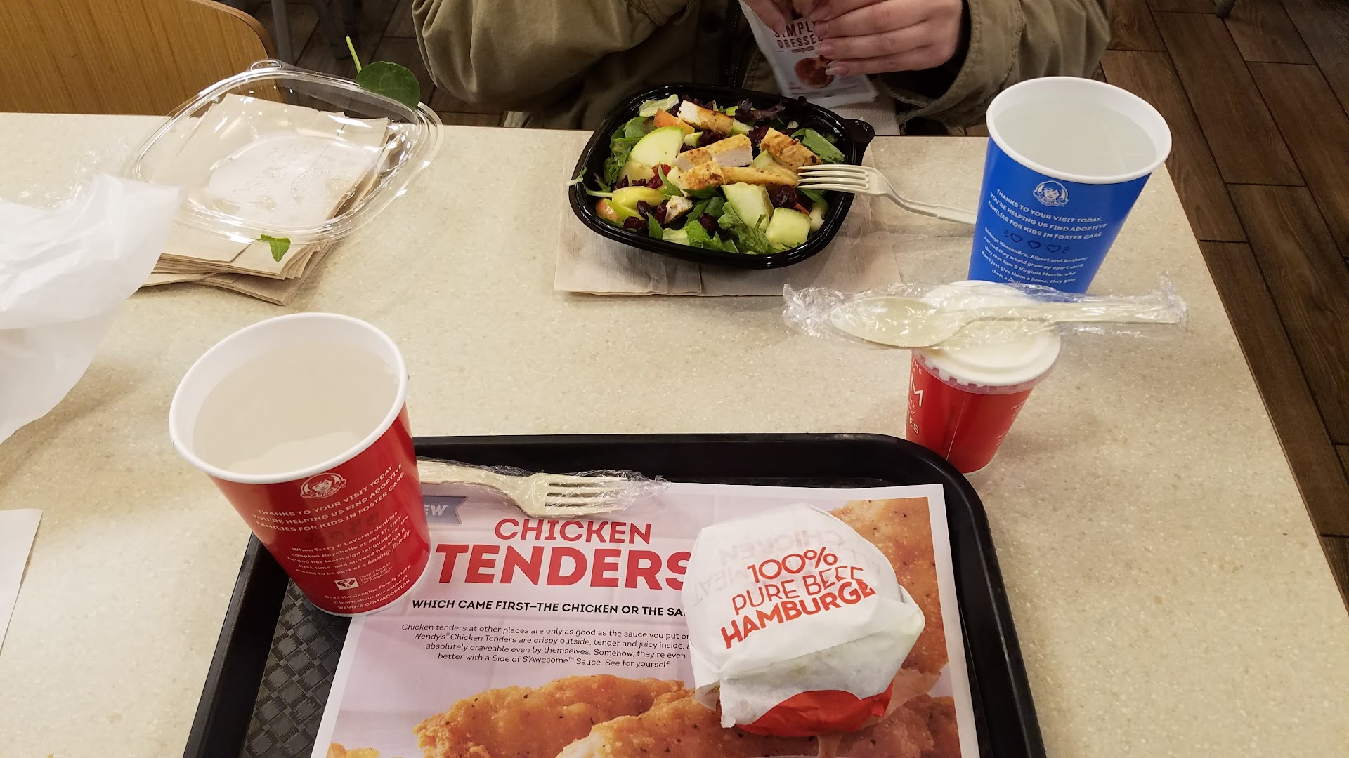 Read more0 stars but won't let me rate any lower 28 minutes to order two salads, and another 6 to actually have the manager and the kid grab them from the fridge and give them to me.8 customers in front of us. I noticed that every order in front of us was wrong because every one was bringing their burgers back.