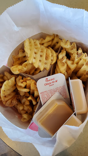 Read moreThe service is awful and they need to hire more employees. I understand that it gets busy but I’ve worked at CFA and the guests come first. Whether it’s refilling a drink or getting more sauce. I received my order and politely asked for a new drink since the fanta had no syrup and I was rudely cut off by a “have a nice day”. In the middle of my sentence! So rude I had to have my boyfriend get it for me. Even then it took him forever, because the employees weren’t paying any attention to their guests. They need more employees definitely. The lines are long and wait times for food is even longer. It seems like there’s only one person in the kitchen and two as cashiers....
