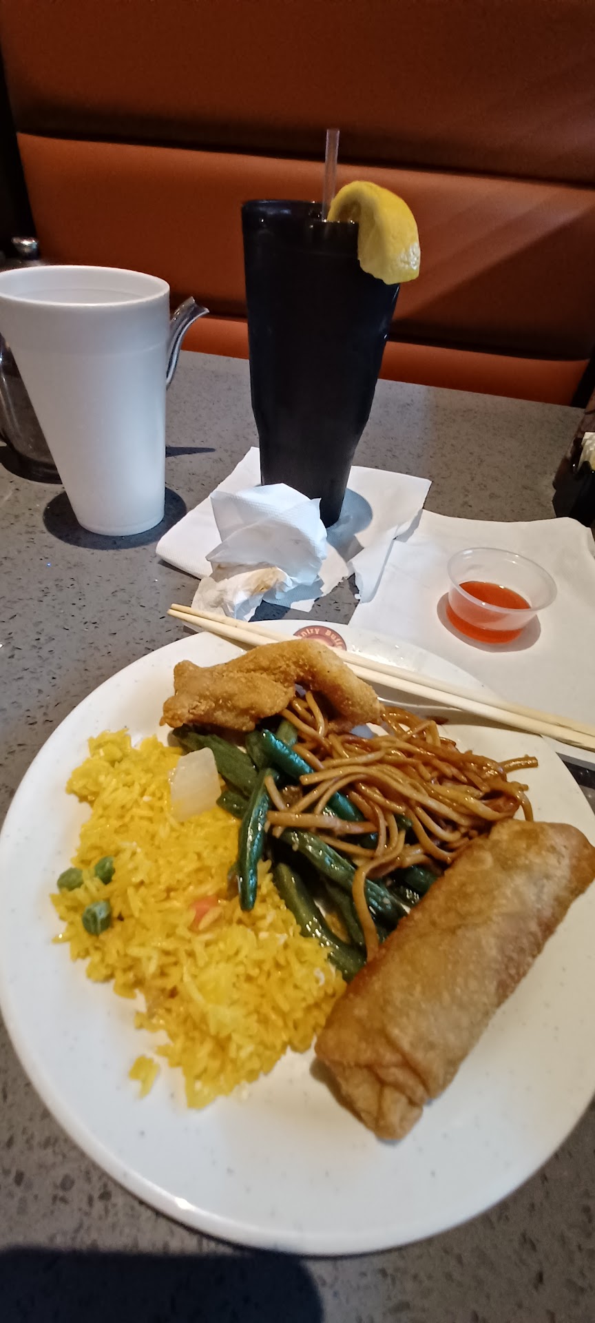 05/18/25 - I arrived a little after 11 am. I was greeted by the take-out hostess and redirected to the seating hostess, who greeted me and took my drink order (hot tea and water w/lemon). I was led to a booth and a straw was placed on my table. I went to the buffet area, the plates and utensils were displayed along the wall. That was a good use of space. I didn't see hand sanitizer. My first plate was small, all food items were from a hot line. Food taste and textures were basic, nothing extraordinary. The only item that was close to "hot" was the egg roll. Lo main - cold Green beans - tepid Fried Rice - cold Fried fish - tepid, not hot or warm Egg roll - warm When I returned to my table, my tea and water were there. I reached for my mug and noticed a stain on the side. There was liquid in the bottom. I, initially, thought it was water from the dishwasher. But since there was a dark stain on the side, I wiped it out. It was coffee in mug. I went to the seating hostess and showed her the mug (there was another female staff member with her). The other staff member got my waitress and showed her the mug. I was told the my waitress would bring me another mug. I returned to my table. My waitress presented me with a Large Styrofoam cup and made an explanation that it was in place of the mug 'so I wouldn't have a problem'.