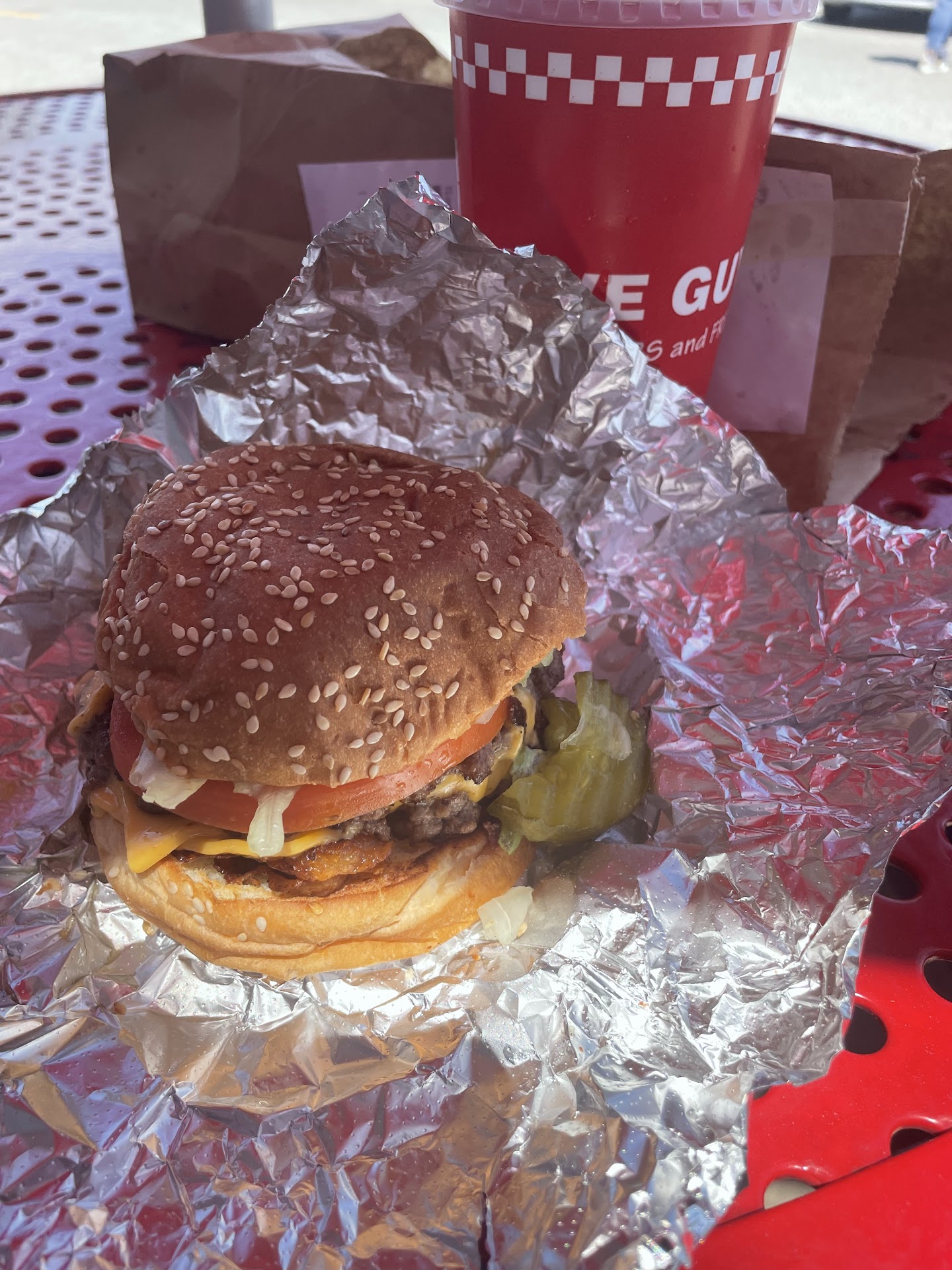 ย ย ย Read moreThis place is GREAT! You actually get what you pay for because all the meat is 100% real beef no artificials like McDonald's or any other fast food burger restaurants. 3.5 ounce size patties with as much free toppings as you want. Your burger is cooked fresh as soon as you order, and you wait no longer than 7 mins. If you order fries you get a large portion.. For example, a large fry at Five Guys serves 4 people! Awesome right? I know! During your visit you get free peanuts, and last but not least.. This place has the new coke machines which has every coke product in every flavor you could ever think of! Lol okay maybe I over exaggerated a bit but it has 100+...