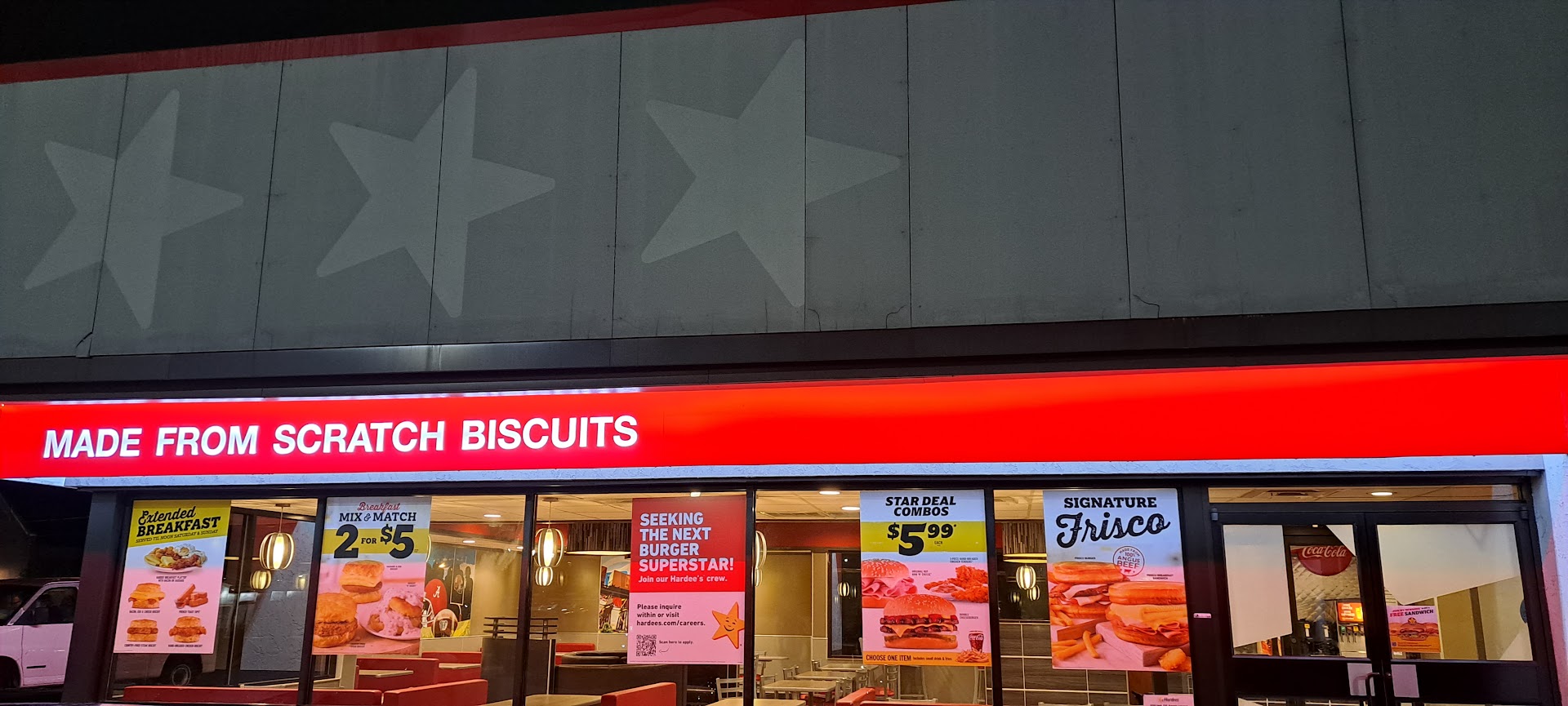 Read moreI really don't know where to start.... The restaurant was clean almost spotless. The counter personell was courteous and friendly. My monster thickburger was tasty, accompanied by a large order of fries that I could not finish. Okay that was all the good part. And now for the rest of the story. The transient gentleman sitting two tables away occasionally getting up to retrieve condiment packets and to refill his Taco Bell cup at the soda fountain was hard to ignore but I tried. While in the restroom I noticed that somebody was sleeping on the toilet. I was surprised to see it was one of your employees walking out of the restroom. I was not alone. I had brought my helper along with me. We planned on working through the night to get a job back on schedule. He had the chicken fingers and fries. An hour after we got back to the job he was projectile vomiting. I had to stop work and take him home. As Forrest would say... that's all I have to...
