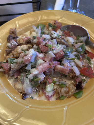 Fajitas Gumbo is a bowl of goodness conjured up by angels in Mexican restaurant heaven!! It is a bowl of mixed fajitas with grilled chicken, grilled steak and grilled shrimp. Lots of veggies and covered with cheese dip, and topped with pico. It is served in a large bowl with spoon and warm flour tortillas. This has to be the BEST entree I have ever eaten at ANY Mexican restaurant!!!