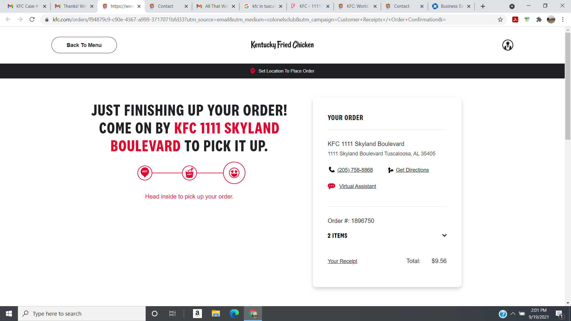 after 8-10 hours of driving i got excited that my hotel had a KFC right next door. so often i am tired and forget to get something before i stop for the night, or where i stop has truck parking and no where to eat nearby. anyway i ordered online because with pandemic some places don't open dining rooms. i put my order online and get a receipt via email at 8:17pm. i got over and the girl working says we are closed. i say i have an order i just need to pick up. She says there is only me and one other working, so we are closed early and we threw everything away. mind you i was right behind someone that got their food. it was only a few minutes after i ordered. As a matter of fact i went to walmart, parked, walked in, got a tv and checked out at 8:38pm after this happened. So it was well before the time for them to close even with changes in their hours. it is always something with KFC. I am just sick and tired of excuses and poor management. They are closing early, they have no chicken, they have no strips, they have no white meat. I would have a heart attack if they actually just made an order without an excuse. I am just done. oh and i still have yet to receive my money back on my card, so as of now they are...