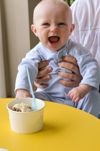 They sell by the scoop in cups or waffle cones. I tried the Crème Brûlée which was very good. Check it out and let me know...