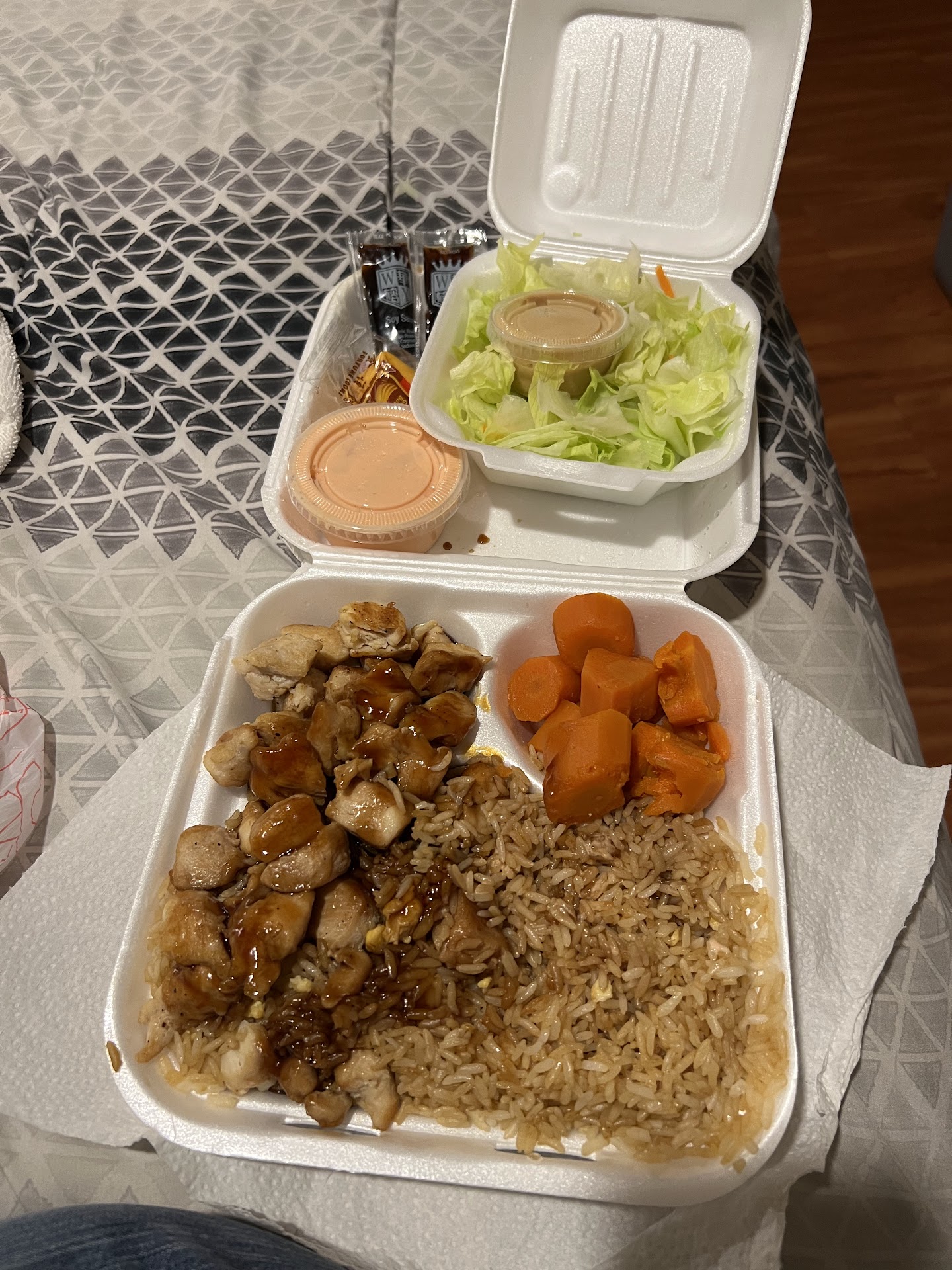 Ā Ā Ā Read moreGot to enjoy the steak and chicken hibachi with mixed veggies. Overall a good meal, portion sizes and freshness of everything seems top notch. My one issue is the quality of steak used. It's a flat beef, loaded with meat tenderizer, similar to what I'd call "Chinese takeout" beef. If that's ever changed to true cubed chunks of steak rather than beef strips, this would be a 5* review. The ginger salad and sweet carrots are the standouts of the meal, excellent flavors...