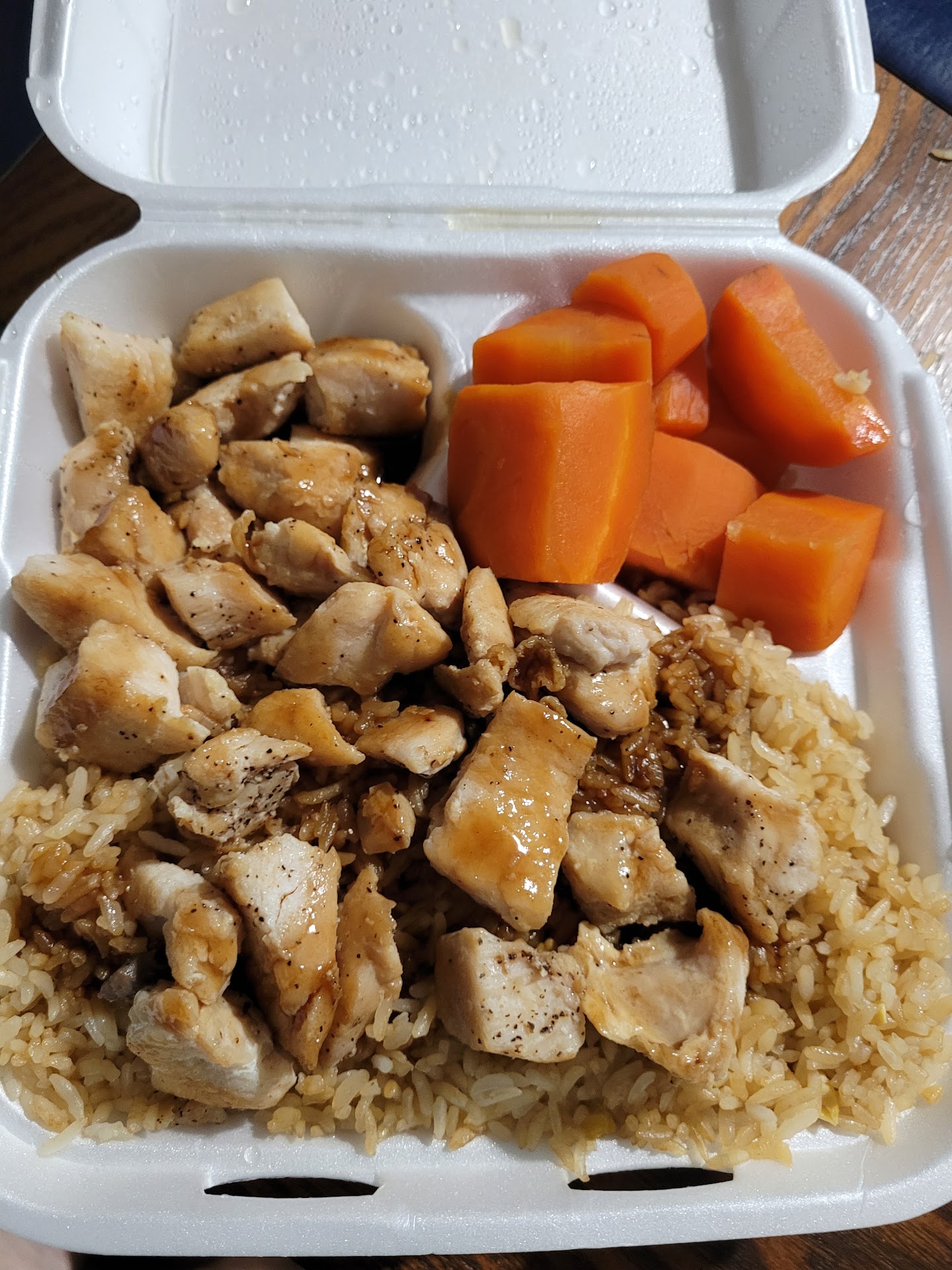 Being that I'm not a sushi eater, I always go for the hibachi. My boyfriend had steak and chicken, and I had the veggie. The veggie dinner consisted of broccoli, cucumbers, onion, and mushrooms. All hibachi dinners come with a side of sweet and tender carrots. The fried rice is tasty and plentiful.