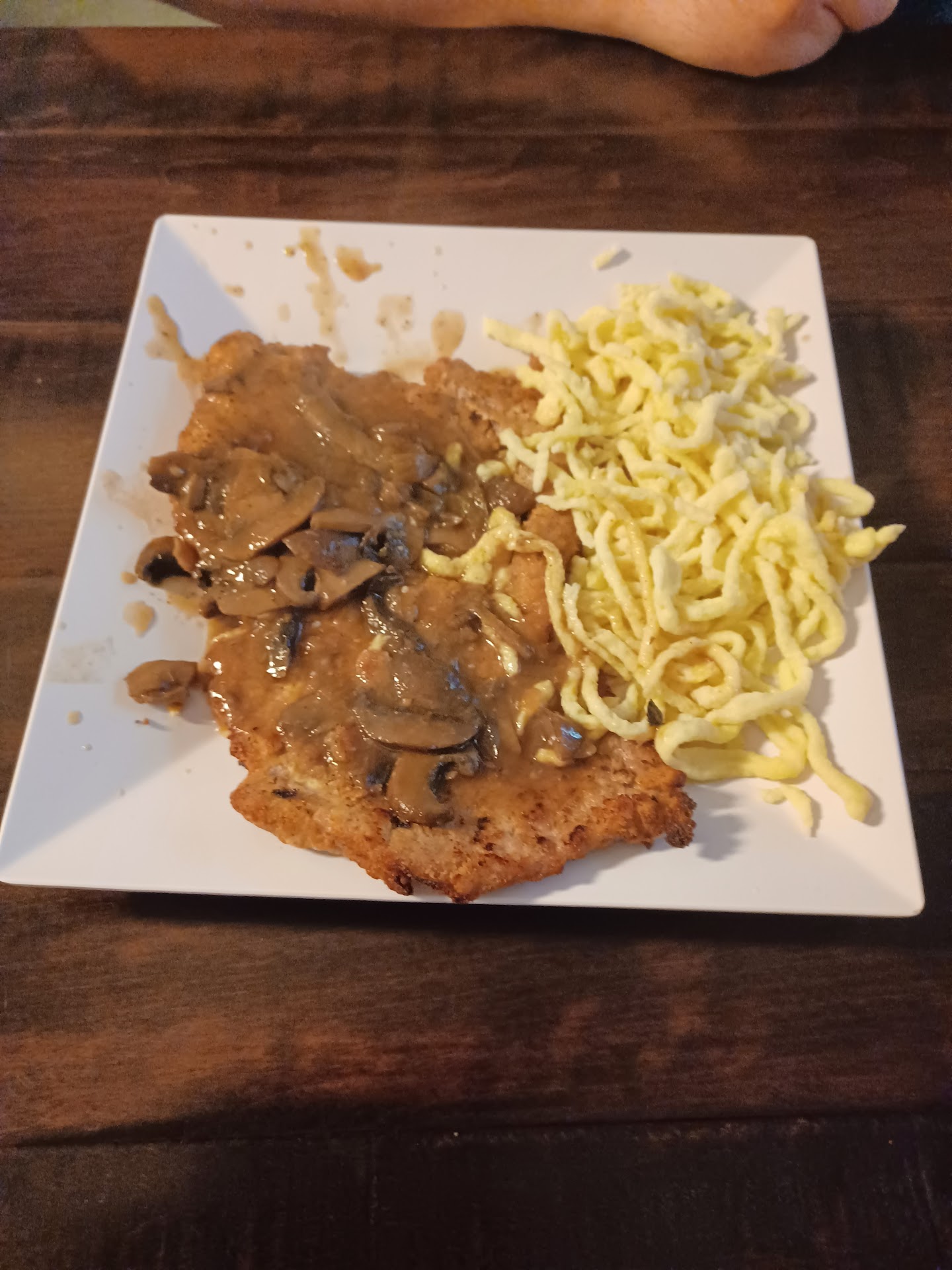 Then we learned they were not decoration. The cook came around and played accordion for all of the patrons. It was such a DELIGHT! I wasn't very hungry and I ordered a beverage and a salted pretzel. My husband ordered a plate of schnitzel and spaetzle (pictured in the review photos). It looked far better before we dug in but it smelled so good we forgot to take pictures. The spaetzle was delicate and simple and paired well with the sauce that was served with the schnitzel. The pretzel was out of this world! No way was it frozen. Best pretzel I ever had - by a lot.