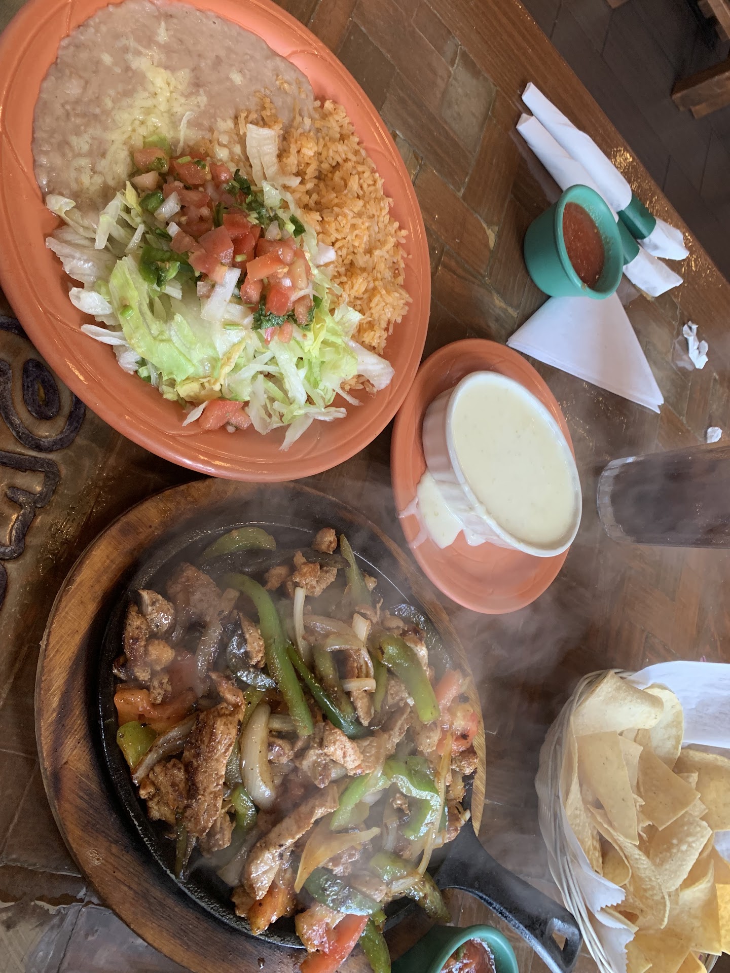 Read moreWe came here Sunday afternoon. They immediately sat us and handed us our chips and salsa. The chips were warm but they were hard and not enjoyable. Salsa is good, however. We ordered drinks and when mine came, it had a fly in it so I had to ask for another. We ordered chicken fajitas for one and it was more than enough to split for 2 people. They came out fast and sizzling, still with smoke. Good portion of chicken and veggies, with side of lettuce, pico, beans, and rice. The pico was a bit overdressed with lime. The chicken itself is marinated in something that is super dark and at the bottom of the plate is just a pool of this dark liquid which I didn't like. I'd prefer something more fresh. Was very pricey- Sunday's they don't do lunch specials and they are currently charging .95 extra for grilled meats because of a shortage.. you’ll probably be spending around $20 a person if you get any side dips/drinks We've had better experiences here but today has made me wonder if I should be searching for a better...