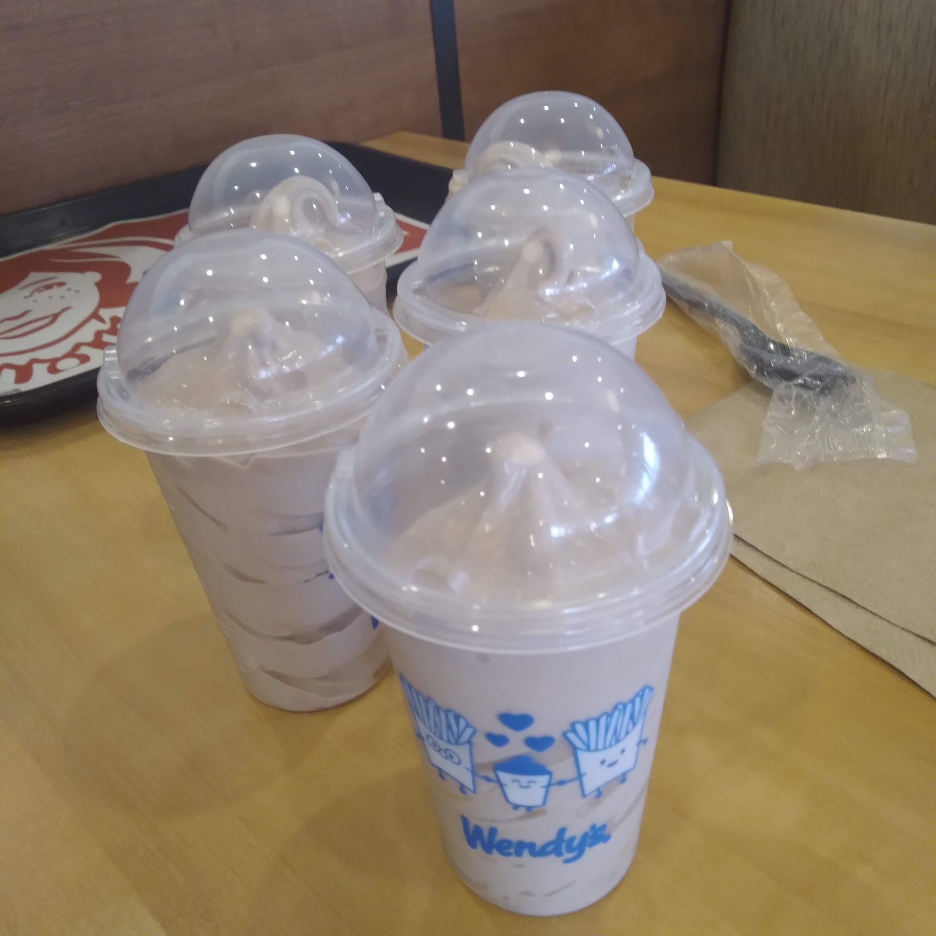 My friend and I stopped for lunch after shopping at Walmart. She ordered the 4 for $4. A jr. cheeseburger, 4 nuggets, fries, and a drink. I ordered the $5 biggie bag. A double stack jr bacon cheeseburger, 4 nuggets, fries, and a drink. I just realized that I got ripped off. I should have had a crispy chicken sandwich as well. They were promoting these little coupon books for $1. It entitled you to five free jr frostys. So I bought it. We sat down to eat our food and our burgers were cold. At first, I thought mine didn't have a burger on it. I couldn't see it. It was on the bottom bun covered by the piece of cheese. I still insisted on fresh burgers for both of us. Within a minute, they produced two hot jr double stack bacon cheeseburgers. Why couldn't they do that to begin with? The fries and nuggets were warm. They were good. When we finished eating, I went back up to redeem our coupons for a couple of frostys. I noticed that my booklet only had three coupons in it. I told the cashier and he checked it out and threw that one away. Then he pulled another one from his cash drawer and placed it in front of the register. He finished giving another customer their food and proceeded to get my frostys. I thought he was giving two to the customer in front of me, but to my utter surprise, he shoved five jr frostys in front of me. I didn't know if he could put them back, so I took them and shared them with another couple sitting nearby. I ate two of them. I certainly couldn't take them home in this heat. What a day! The design of the dining room was weird. You could only go in and out one way. The only trash can was toward the middle and back of the dining room, so you had to walk back there and then around the dividing wall to...