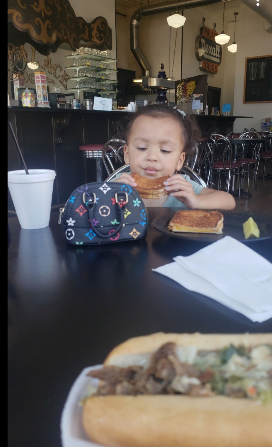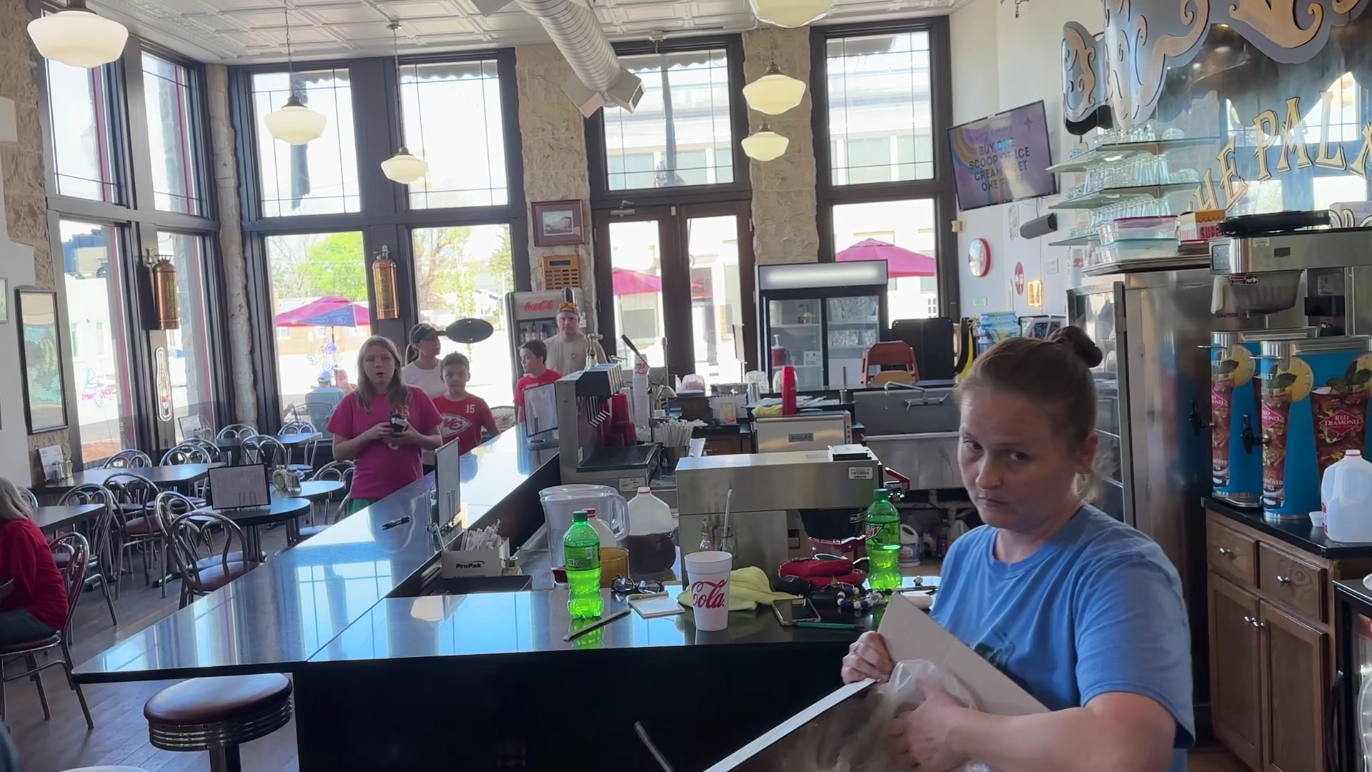 We had what I would describe, as a surprisingly amazing visit here today. Having only been here once, briefly, before, and just for a milkshake, I really had no idea what to expect as far as food or service goes. As it turns out, we were pretty much dazzled with small town, courtesy, and old school deliciousness. I had the double bacon cheeseburger with a side of fruit – this was quite possibly the best cheeseburger I’ve ever had at least one of the top 10, my family got the Aunt B’s chicken salad, the BLT, and the Reuben, all were excellent. My mom got the vanilla milkshake, which was actually the least spectacular thing that we had. We ended our visit with two ice cream cones, a sugar-free cherry vanilla (which I can promise you is probably the best sugar-free ice cream you’ve had) and a peanut butter, chocolate ice cream of some sort, which was also great. Tessa was our server, and was courteous and patient and went above and beyond to be patient with my mom and the rest of us. The decor is really cool as well. Being a former drugstore location, the bathrooms are papered ancient prescriptions filled at the drugstore by local pharmacies back in the day. I don’t think you can really go wrong with this place – if I have to say anything I would say the chicken salad that the regular chicken salad sandwich, tasty, didn’t compare with the one we chose, which had pecans and grapes, and all kinds of goodness in it. Try this place out, even if you haven’t tried it in years, because it proves how service and quality will stand the...