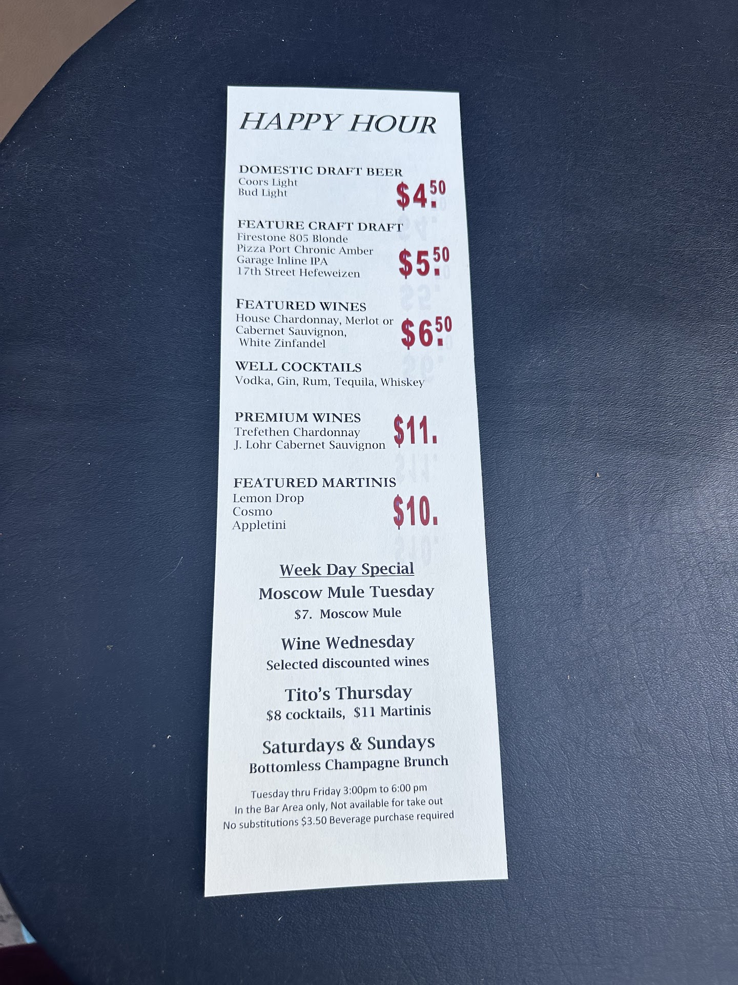Read moreWe have come here a few times the past month as is it close to our house. First time during happy hour the service was slow but at the least the waitress was apologetic. This last time was an absolute joke though. We sat at the last table available in the bar next to the door and soon realized that one door acted as a wind tunnel as everytime it was opened our napkins flew all over the place. We tried to put a chair by that door as there are two doors to hopefully steer people in not ruining our dinner, but our waitress, Amanda C, came and chastised us for not wanting wind blown at us every 5 minutes. She then used that door every single time she went by instead of using the other door. She just seemed like a miserable person after that and gave us the evil eye everytime she walked by so guessing something was wrong in her personal life or possibly the worst hire the service industry has ever made. Another waitress also used the door and when we asked if she could help us out and use the other door since things were flying all over the place she responded "it happens." I guess our waitress was offended that we didnt like sitting next to a wind tunnel as the manager had to come serve our food and she did not come back for the 30 more minutes we were there. We had to get up and ask the manager for the check and his response was just a sigh so was great to see that he cared how terrible our service was sarcasm. So, as you can imagine, we will not be eating there anytime soon and I highly reccommend anyone else to go elsewhere or expect...