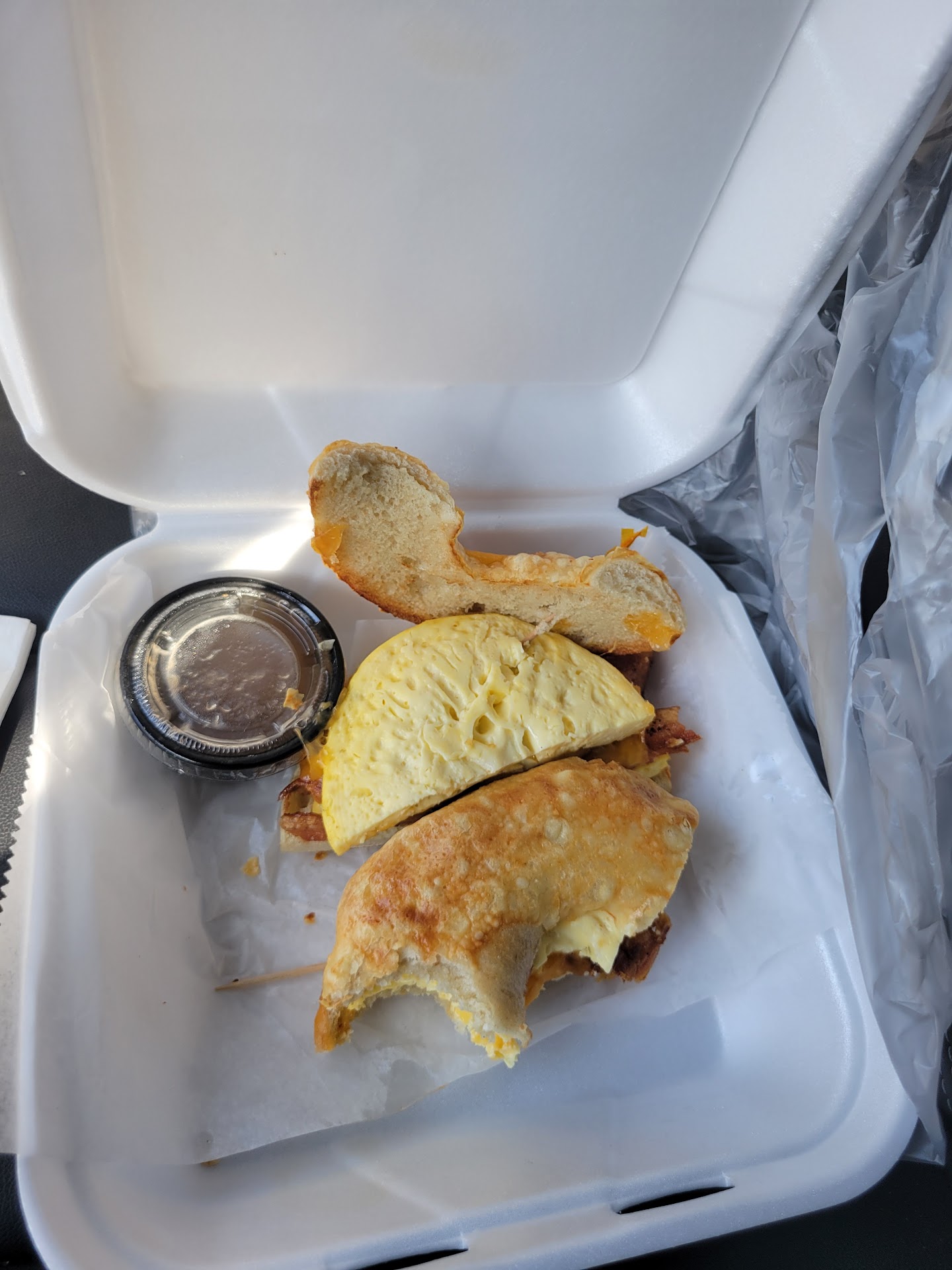 I had a disappointing and concerning experience at Bagel Me. The cream for my coffee was clearly spoiled—chunks were coming out of it, which made the coffee undrinkable. There were three or four other customers nearby who had this same issue with the communal cream.