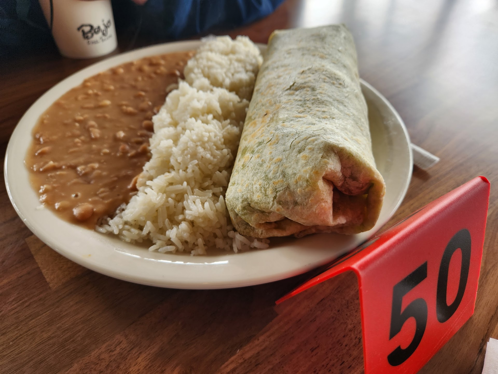 The food was presented very well. The burrito was tasty and filling. The included avocado was a good addition. The only complaint is the rice that tasted in the verge of steam rice. It slightly threw off my palate. The pinto beans were great. Tasted like traditional dish possibly with a hint of lard in the ingredient.