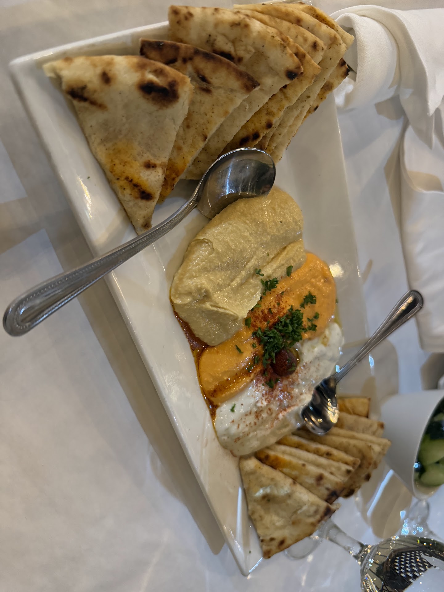 We got the Trio appetizer with Yelp, and while it was a bit small, it was absolutely delicious - truly a perfect combination. For our entrees, I had the chicken kleftiko, which was very comforting and filling, while my partner had the moussaka, which they stated was also equal parts comforting and filling. They did mention that they're used to having tomatoes/tomato sauce with their moussaka, which this lacked, but they still sung its praises all the same.