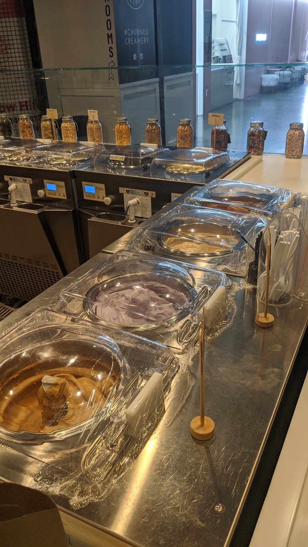 I have eaten at Churned several times. The first time I loved it and was impressed by their flavor offering. The ice cream was a little too soft for my liking but the flavors made up for it, as did the fun staff.