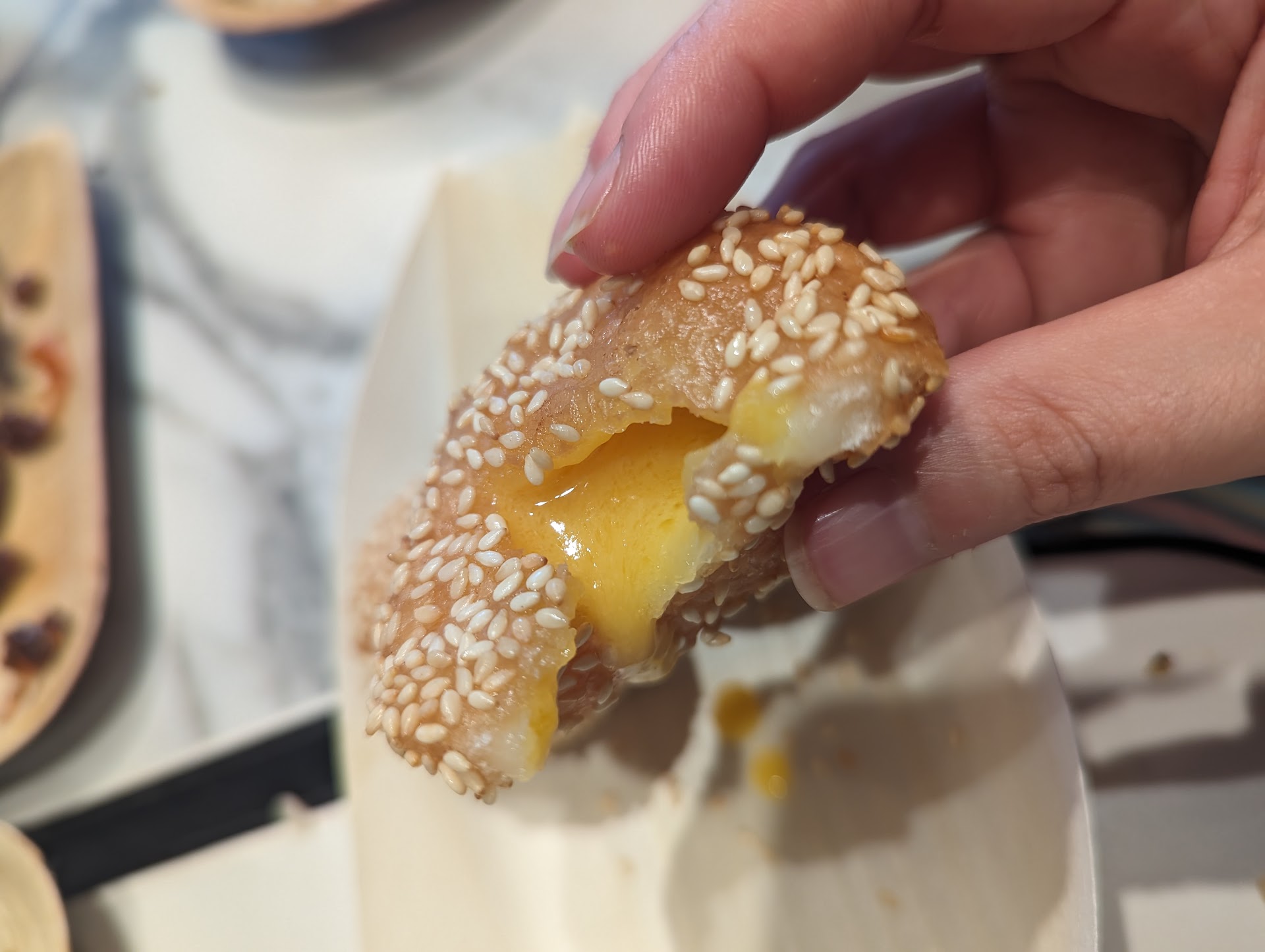 Last and, in this case, the most, the Egg Yolk Sesame Balls. These balls with a chewy and almost gooey (more runny) sweet yolky filling were the tastiest bites of the night. This would be the dish for which I could see myself dropping by next time.