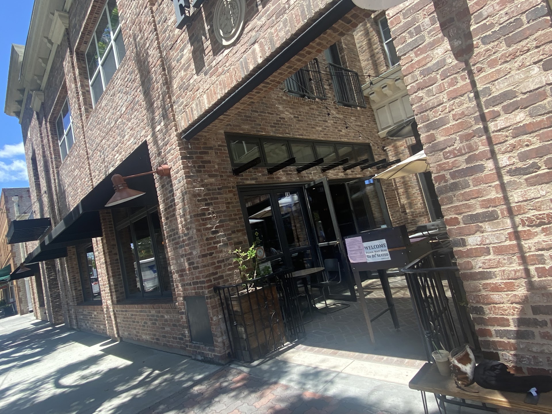I walked over during my lunch break, since I now work in Old Town Tustin, and the setting really adds to the experience. I’ve included a few photos so you can see how charming the area is—think brick buildings, Victorian homes, and a vibe that feels more like a storybook town than Southern California. The restaurant’s outdoor patio is a perfect little oasis, complete with a cute fountain, leafy shade, and sunny spots for those who want them.