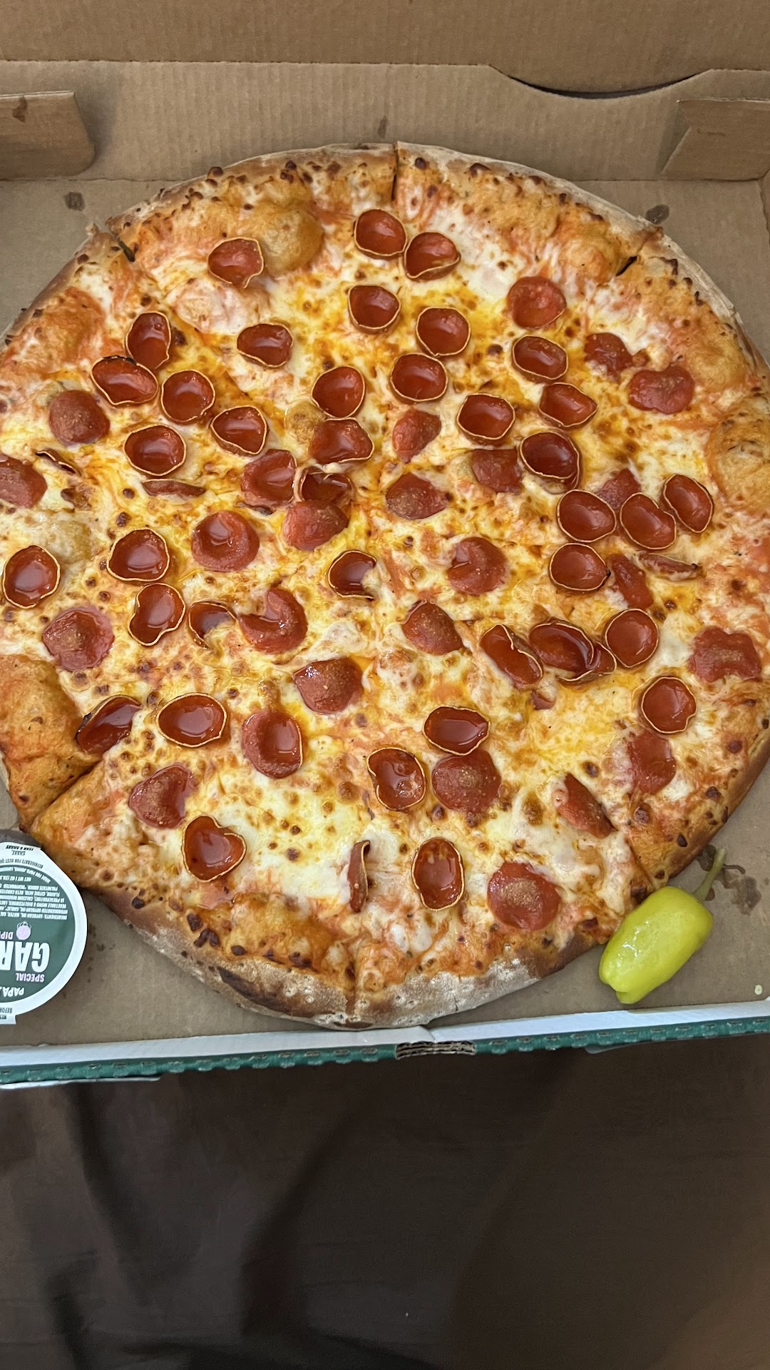 I ordered one large pizza, a 2 L sierra mist, and their cookie dessert. It said it was going to take about 29 to 38 minutes. I didn’t think it was that big of a deal. It took an hour and 45 minutes for me to get my food. The tracker just kept saying being prepared. When I called them no one answered the phone. I called a second time no answer. Two seconds later I get a text all of a sudden now it’s out for delivery. When the lady came to deliver it one she forgot my soda in the car so she went back to go get it. I opened my pizza and my pizza stone cold. When she brings me my soda it’s not even a 2 L they only have the 16 ounces so they brought me like three of them instead of calling me to ask if I wanted to change it. This is ridiculous having to wait almost 2 hours when it said maybe 30 minutes on top. The fact that they didn’t even call me to let me know it was going to take longer. And they didn’t send it out for delivery until I tried calling them I’m not...