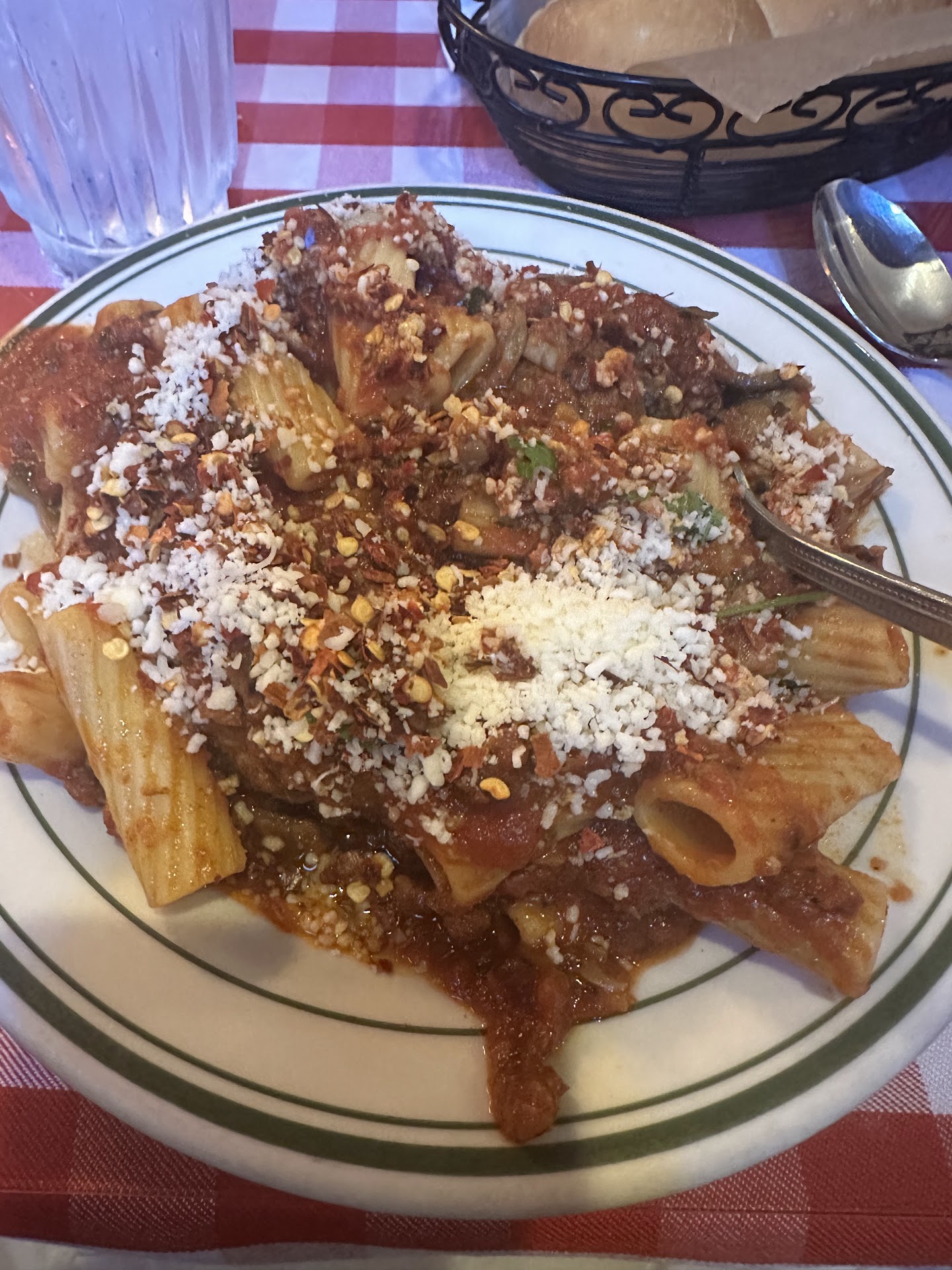 It was absolutely swimming in sauce. For size of the bowl they gave me, the sauce was actually almost overflowing on one end. This most likely added to the issues mentioned in #1, cooking the pasta even further even after it was taken out of the pot.