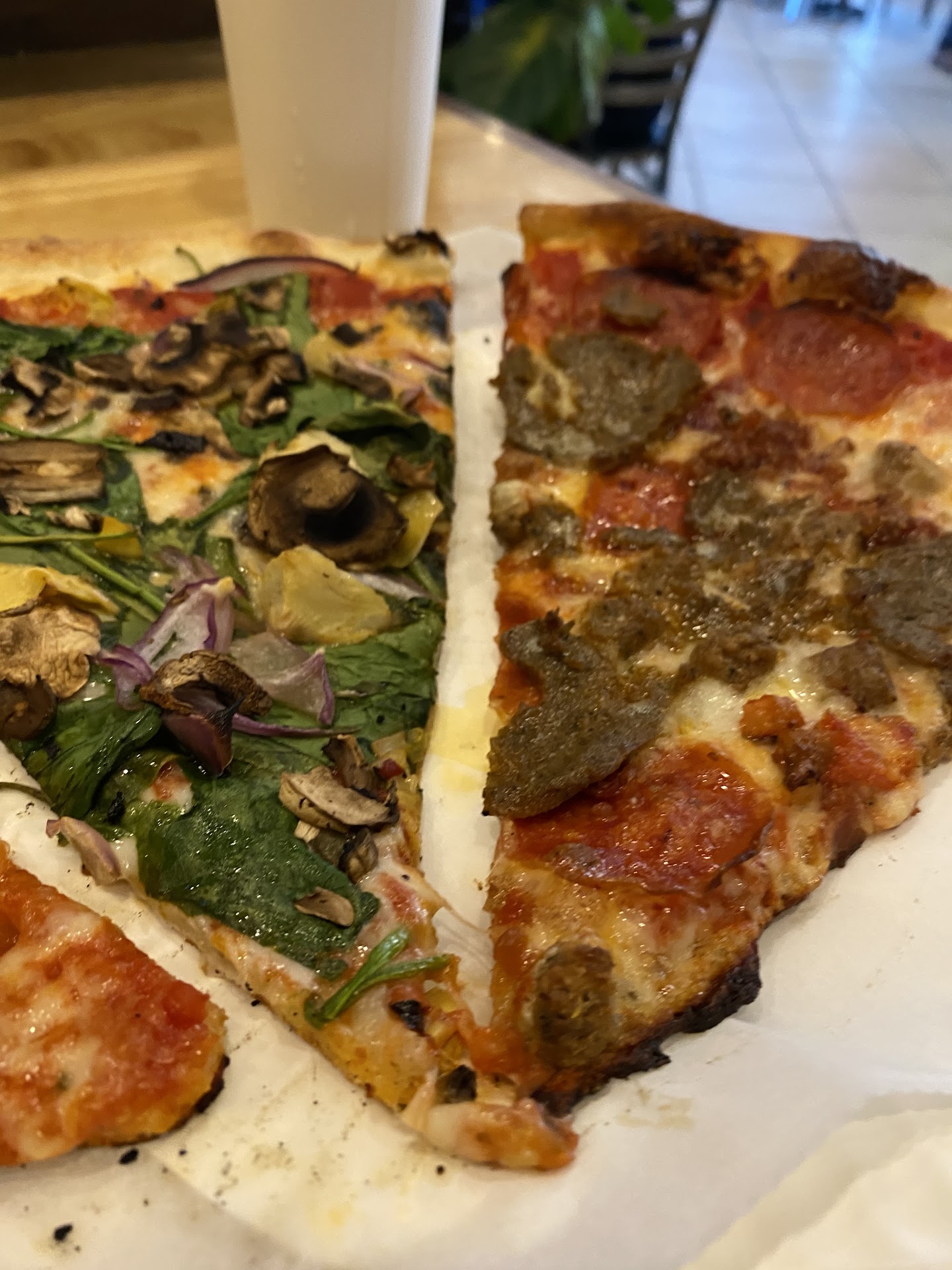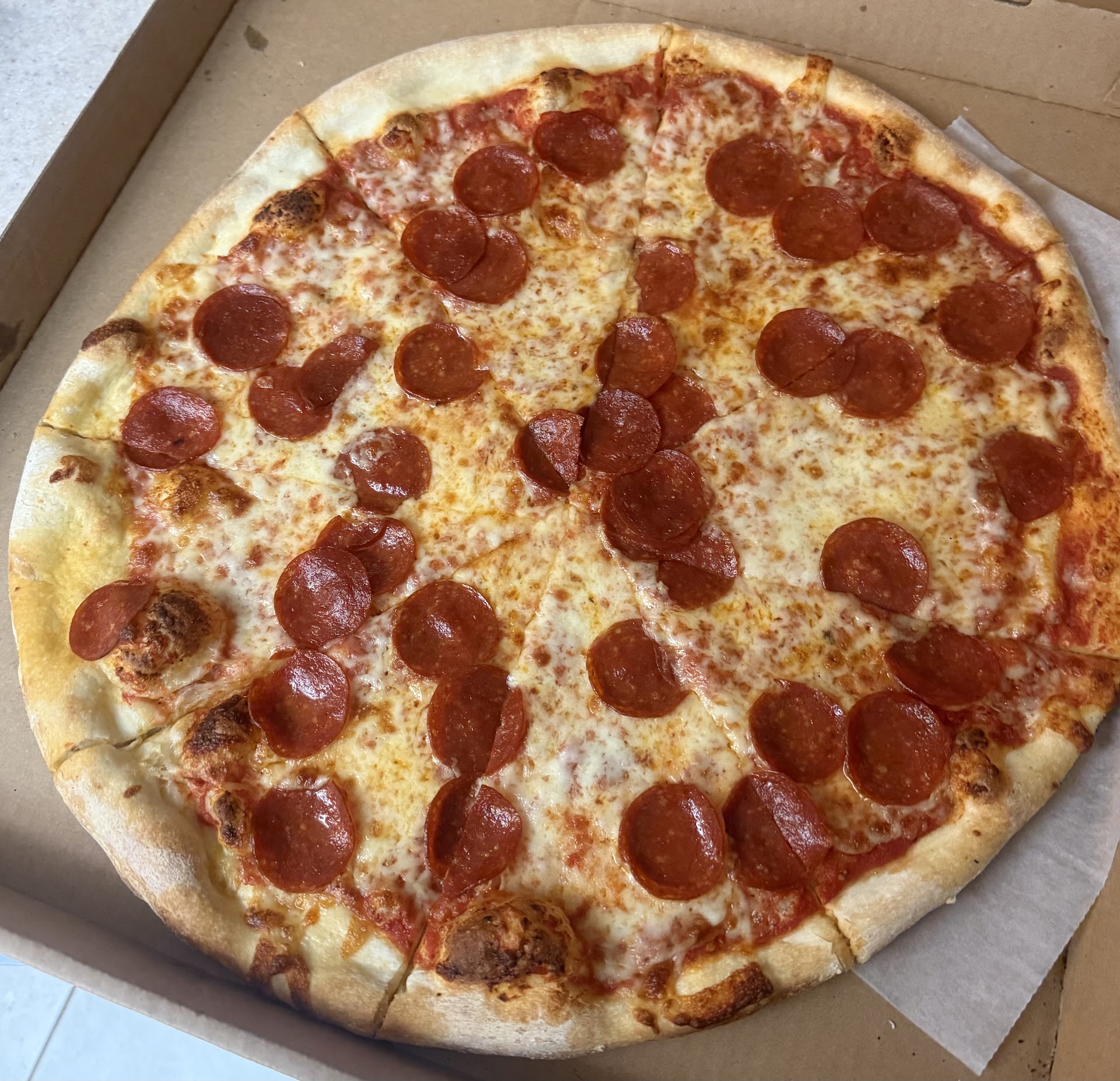 I am not a fan of thin crust pizzas, but this pizza stood the test of all the toppings of deluxe toppings( pepp, sausage, onion, bell peppers, mush, olive). Awesome long cheese pulls. Massive slices; I can only imagine the xl size.
