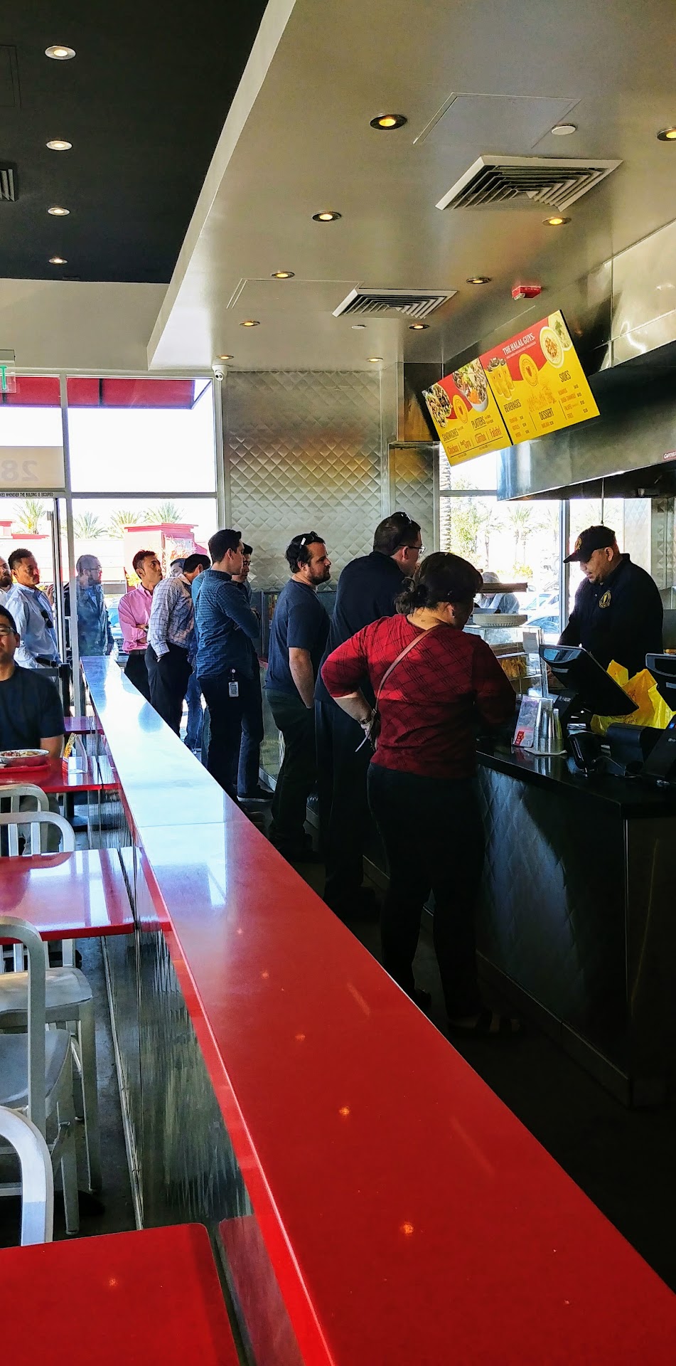 DO NOT ORDER ONLINE Love Halal guys, but this location has always seemed understaffed, or not very motivated. Ordered online today, placed order at 11:30, ETA to be done was 11:42, drove there and arrived about 12 (plenty of time, I assumed). I go in & there were FIVE people waiting on online orders ahead of me... Only an African American kid who was slow as a mf working, while some Asian kid was cutting up the meat/doing prep. This dude was moving insanely slow, I cannot stress this enough... may have been overwhelmed, but c'mon man, at least give us an ETA apologize, something. He just kept his head down and SLOWLY got through a few orders. THEN a baddie Latina walked into the mix, either back from lunch or just clocking in, she was the real MVP. She literally got through the ENTIRE line of walk-ins (6-8ppl) and just had black guy ring them up, she asked us all pick up or order, separated the lines (yes, some people didn't even know where to stand, African American kid did nothing for this), was cheerful, personable, quick and efficient. That lady saved the day, and looked good doing it, too... Anyways, finally got my order around 12:27, so nearly an hour after ordering... Should've waited for baddie Latina to clock in, and just ordered there, dually noted. Give that woman a promotion or something, because I was legitimately a few minutes from just walking out due to the disorganization and lack of urgency. Again, order there, and if the baddie Latina is there, be grateful. If the other foos are there, you may be better...