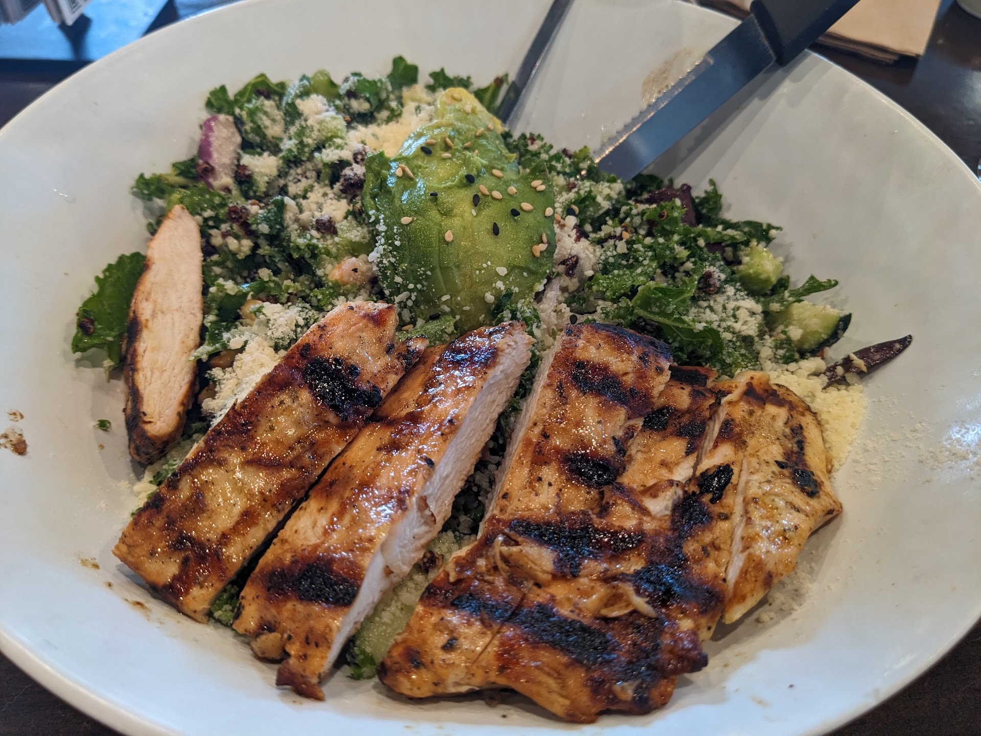 I've had burgers, salads, mac n cheese and chili fries. Their salads are stand out! Kale Quinoa crunch is a go to! The honey lime vinaigrette pairs excellent with it! Sorry for the TMI but it'll clear you out! As of lately I always get a side salad with the CHARRED CORN VINAIGRETTE! So good!