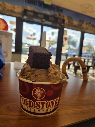 Read moreI have had tons of experiences with Cold Stone Creamery, but for those of you who haven't, imagine it like a Subway for ice cream. You choose a flavor, they mash the ice cream down on a long counter slab, you pick your toppings, they add them to the spread-out ice cream on the counter, and then chop them all up so it's perfectly mixed when they roll it back into the ball form for your dish or cone. It isn't standard practice in normal ice cream parlors, so I've seen several people shocked at their temporarily flattened ice cream on the counter.
