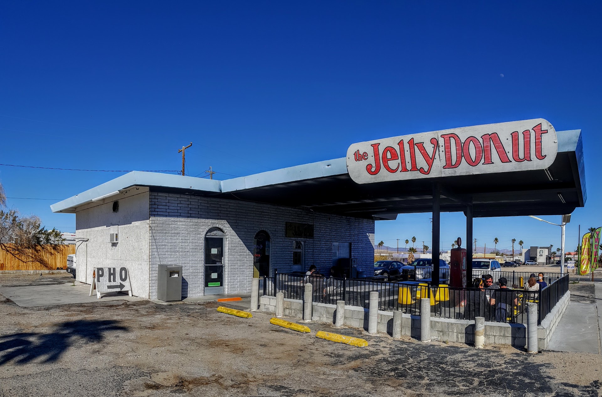 Yes! The Jelly Donut,located in 29 Palms California,makes delicious,fresh,donuts-with popping glaze,delicious filled donuts,coffee and drinks-but dont let the name fool you-"The Jelly Donut" is also home to a super delicious Vietnamese cuisine Pho Restaurant too! They have a great vietnamese cuisine menu. They make delicious fresh pho noodle soup,we had the #5 Pho-King soup with beef-excellent-and they have delicious "dumpling tacos" a super tasty spin on the already tasty dumplings-you gotta try these with their chile oil paste. Everything is either take out (they make everything fresh and fast) or eat outside in their sunny patio-which in a prior life was a gas station and they still have one of the original vintage red pumps there! They keep the place super clean and covid safe! This place is a local fave of residents,visitors to nearby Joshua Tree National park and the men and woman of the largest United States Marine Corp.,bases in the country-and now its one of our "Pho and Do" favorites too! Plenty of free parking and you call ahead and pick it up! . . . #thejellydonut #29palmscalifornia #29palms #usmc #vietnamese #pho #phonoodlesoup #potstickers #soup #dumplingtacos #donuts #jelly #glazed #maplebar #chileoil #dumplings #potstickers #sandwiches #chickenwings #Eggrolls #shrimpeggrolls #fritters #thejellydonut29palmscalifornia #godisgood #seetheusa #ilovepho #ilovedonuts #ilovevietnamesefood #marinecorp #waynesalvatti...