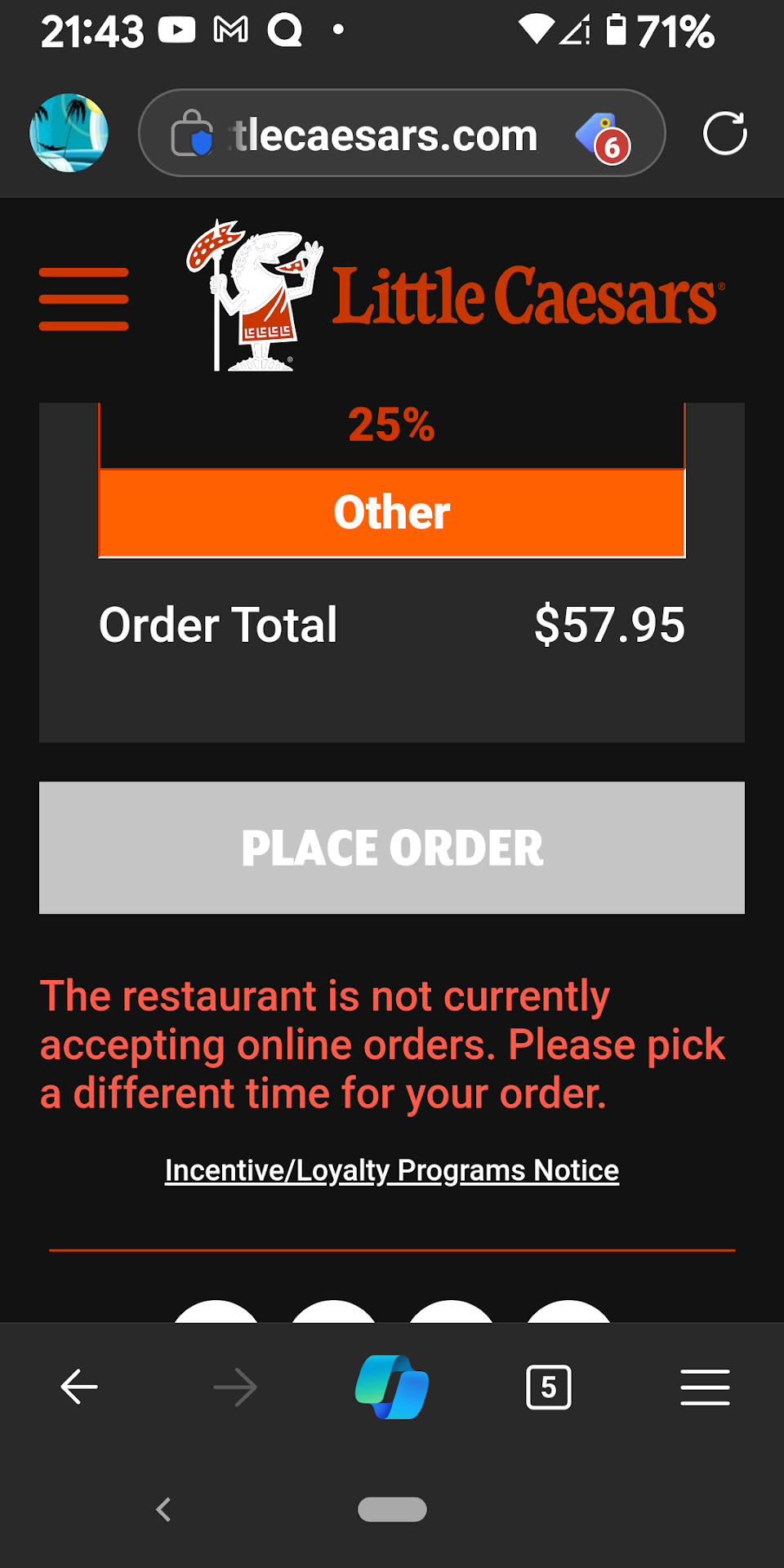 Read moreORDERED ONLY 2 THINGS, STILL COULDN'T GET IT RIGHT. Place to delivery through the app yesterday to be delivered today, already paid. I ordered pepperoni crazy puffs and plain crazy wings. Come to find out they don't have what the puffs then also don't have the substitute I asked for, all they have is just basic Pizza. The only thing I liked about Little Caesars is they have unique items, but the overall quality Four Little Caesars everywhere that I've ever been is subpar at best. When my food finally arrived, of of course it was not the crazy Puffs but to my surprise it was also the wrong wings. The awesome doordash lady who delivered informed me that this particular location always has issues and she " cringes " every time she sees an order from...