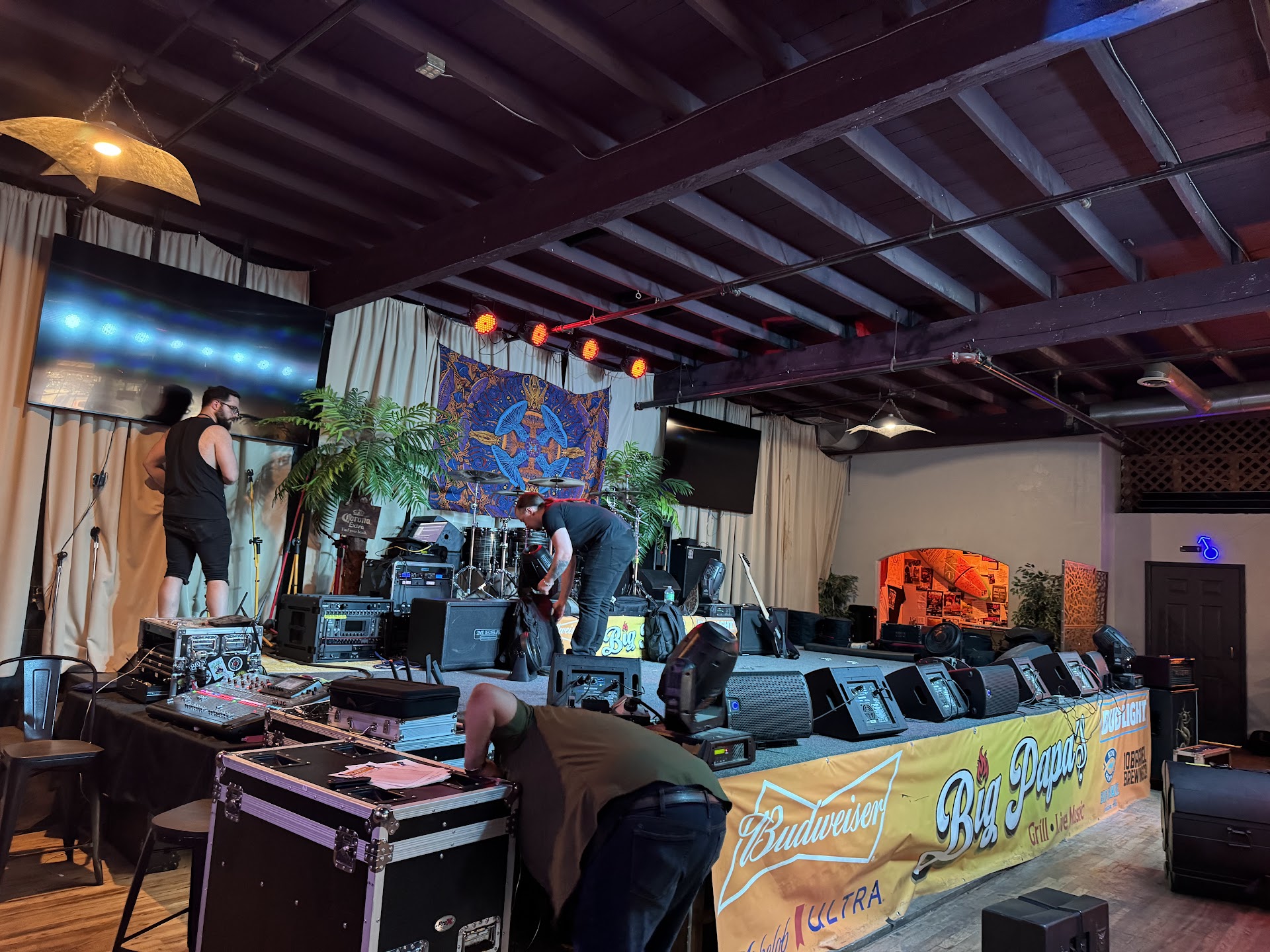 They have a sweet table built on top of an old bicycle, pretty nice looking bar with fancy lighting, a couple billiards tables, and a decent stage, good acoustics with the...