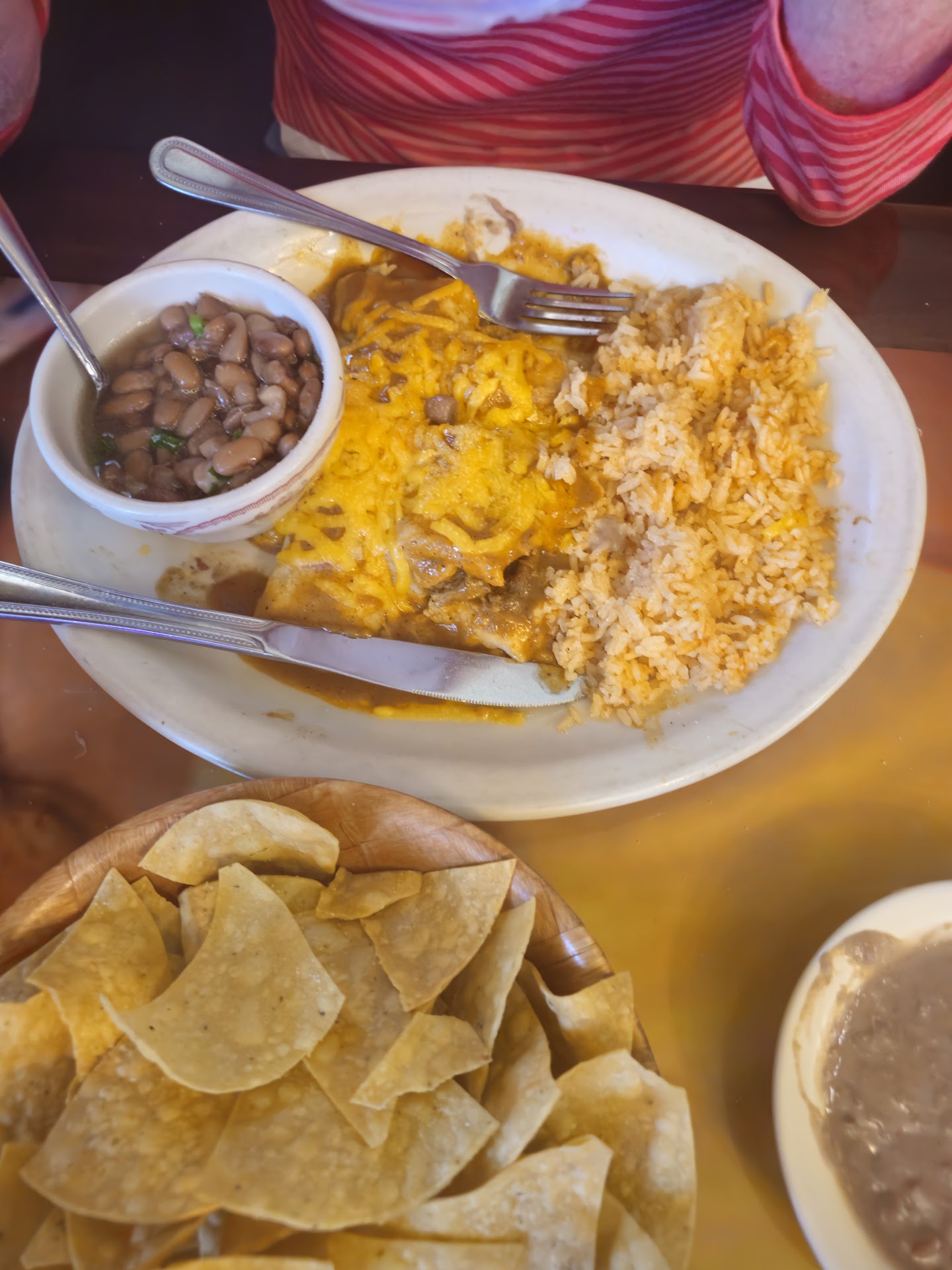 So we came here because the other restaurant my aunt wanted to go to was closed. I was in town visiting and we both really wanted some authentic Mexican food. We were sat immediately, and greeted by our server Marisol within a minute. She was very polite, and seemed to be handling the 3 or 4 tables that were in the restaurant at about 1115 am. I got the Idaho nachos, and my aunt got the pick 3 option with 1 enchilada, rice and beans. The nachos were great, even the ones at the bottom remained pretty crispy, which isn't always easy to accomplish as they're covered in toppings. Great seasoning and a very good serving size. The complimentary chips were fresh, salsa was delicious and a tad spicy, bean dip was satisfactory. My aunt's enchilada and rice were both very well cooked and seasoned. This was my first visit here, and I like to visit Mexican places almost everywhere I go, I would definitely recommend stopping at this spot in old town twin falls if you're in the area. Marisol was very attentive and kind throughout our visit. Our bill was about 22$ and when filling out the tip line Marisol said "you don't have to leave anything, you can just put a smiley face if you were happy with the service" I tipped her 25% and she deserved even more....