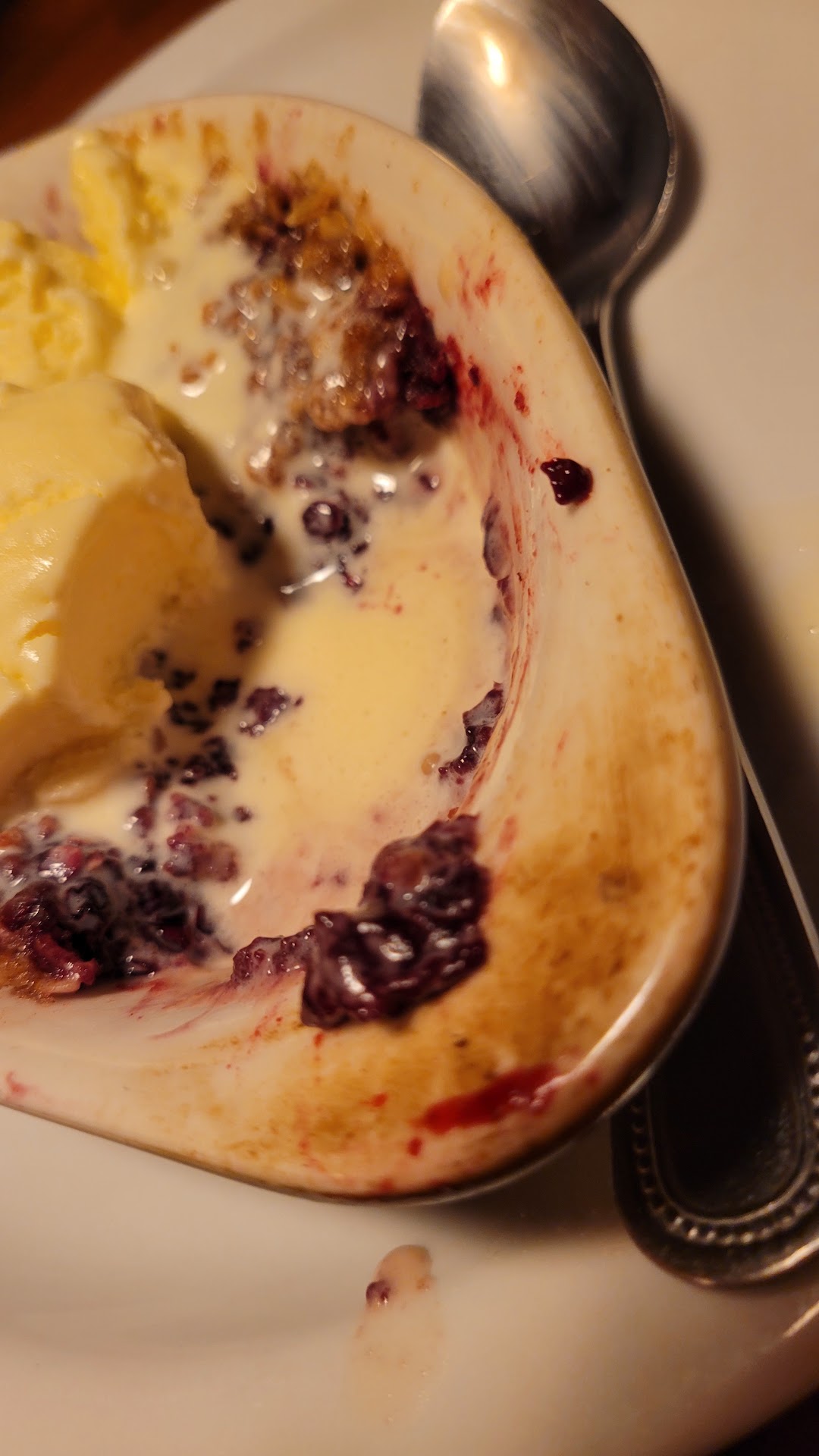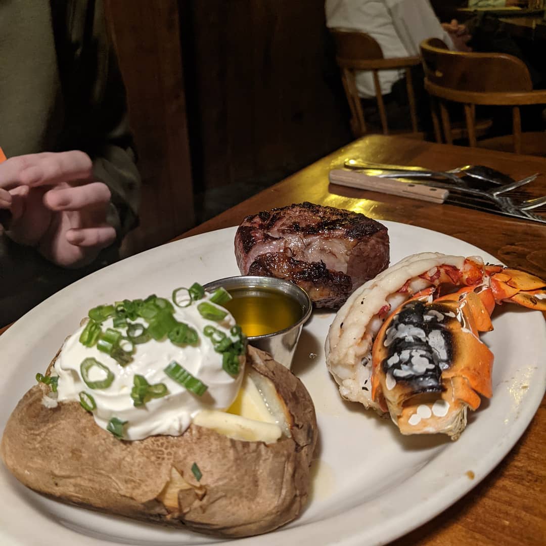 It is very dated and dark inside of here. The food is way overpriced, and the service is just adequate. I know there are regulars here, that like to sit at the bar and be seen, or not seen, drinking over priced cocktails. But this is 2024, and the time for dark decor and old fashion pictures and fixtures passed 25 years ago. There are some people who enjoy this atmosphere, but I am not one of them. By looking around, there are people who agree with me. The chairs at the tables are uncomfortable, and the booths are small. The salad bar has few choices, just the cheap stuff. No eggs, seeds, bacon, just lettuce, and a few veggies. The soup de jour, however, split pea when we were there was fantastic!! Big chunks of meat and a yummy consistency! My fish and chips were just frozen things, but fried nicely. My husband's sirloin steak that was supposed to be cooked medium temp was served rare. I could not have eaten it like that! This was the same problem we had on our last visit. This time, I ordered the fish because last time I had shrimp that was not cleaned properly. Eww, nothing as bad as biting into shrimp and crunching on ... ewww... like I said. After a marginal meal, we decided to end with the blackberry crisp. This consisted of a thin layer of mostly berry seeds covered with, idk, some kind of speckled something that looked like wheatina and then baked. The icecream they topped it with was top notch, but i couldn't enjoy the blackberries because I was just eating seeds. Yuck. Our visit was because we received a gift certificate, which was nice, but we certainly don't go there anymore, since nothing there changes except the increase in price. I wish there were more windows to let the light in. Friendlier staff. Better prices. Better cooks. A nicer atmosphere. I really want to enjoy myself here, I really do . But changes need to be made to bring in a younger crowd. The older patrons are only getting older, and this seems to be the...