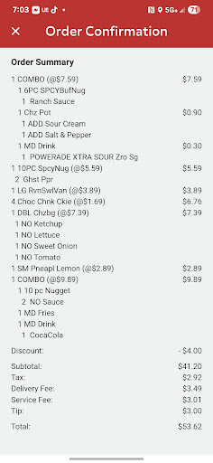 Read moreExtremely disappointed in the way the manager spoke to me when there was an issue with the wendys app itself. We used the app to order $53.00 worth of food as a treat for the kids, and i tried explaining my frustrations to the lady because everything was going smoothly I saw wendys took out the money from my fiances account. They canceled it due to whatever reason then blamed door dash, I spoke with door dash, and they claimed it to be wendys that canceled it. So now we are out money for the next 5 business days and no special treat for the kids. And the lady was literally yelling at me on the phone. Super disappointed in this managers actions, I love wendys usually but this may make me re think ever getting it again. This was the receipt the door dash driver showed her that we had proof we paid. I dont understand why neither could remedy this...