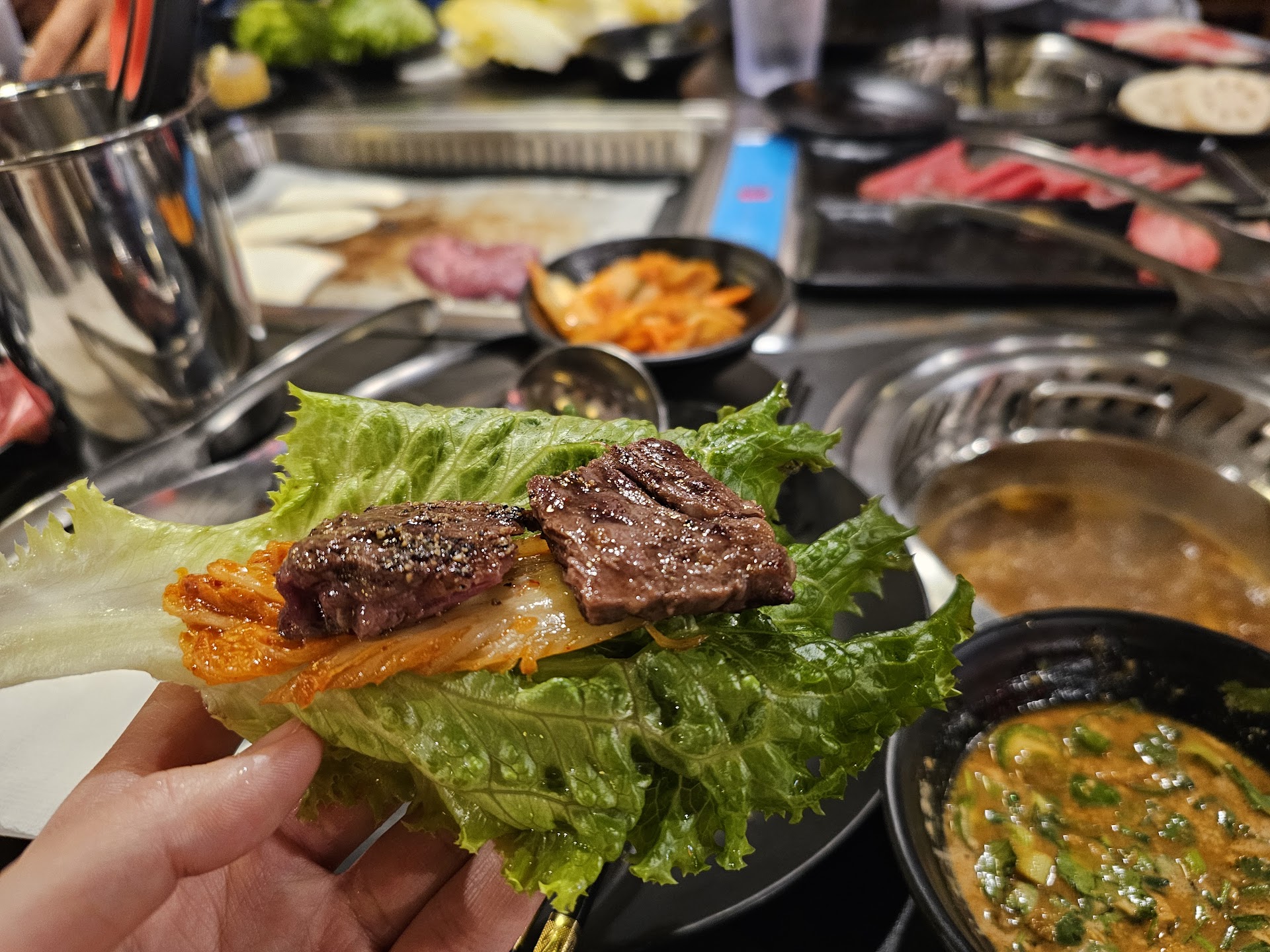 Missing Traditional Banchan: Unlike more traditional Korean BBQ spots, donât expect the usual table-side banchan spread. Staples like japchae, spicy cucumber salad, gyeran-jjim (steamed egg), rice paper, or spicy tofu soup wonât be brought to your table here. The rock pot (a hot stone pot soup) is offered as a substitute, but it's an extra charge. While it's nice to have the option, it doesn't quite make up for the missing variety of small dishes that usually come standard.