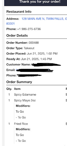 Read moreI made an online order at the correct restaurant, pictures included. I went in to pick up my order and the gentleman was very rude and accused me of ordering at the wrong location so felt very embarrassed and I walked out of the store, I called my wife and questioned her and she sent me all of the information for the online order and sure enough I had all the proof as well as my bank confirmation saying it was paid. I went back in and had to basically prove that I ordered it through them and at the very first I gave them the confirmation order number but that wasn’t enough I had to prove I had made the order online and also prove that I paid. If your online orders doesn't work then don’t offer it. Very embarrassing not only publicly but also to my wife I’m very disappointed I’ve been to a lot of sushi venues in Fort Collins and Denver and this one doesn’t even compare to the customer service, at least at Sushi Ya in twin you get treated like a customer and don’t get disrespected. Hope if you decide to go to this venue that your experience is better than mine. Rolls are pretty small,...