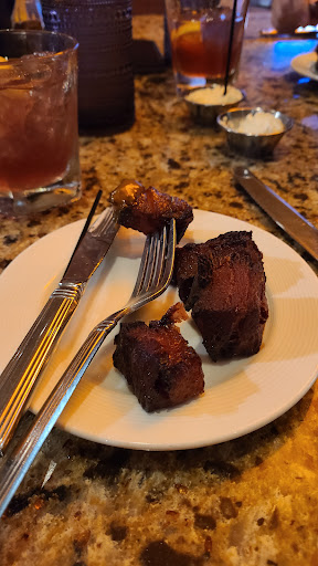 Read moreThe first booth we were seated at the seat was broken and was sinking near to the floor. When brought to the attention of the staff I was told that "yeah they refuse to fix it" I asked to be moved to another table and the staff seemed very frustrated to move my date and I. The bread starter was dry and bland. We both ordered the ribeye steak, medium rare and recieved a well done approximately half inch thick steak. The Ceasar salad tasted nothing of anchovies and was loaded with bacon for some reason. The vegetables were Blue broccoli, yes I did say BLUE, and some carrot slices. The steak fries I ordered were straight from Sam's Club. The only positive was my date ordered the au gratin potatoes. Those were tasty. The restaurant smelled of cleaning rags and solution. Overall a terrible experience. I can not recommend nor say I would return. The Seven Fires is way to expensive...