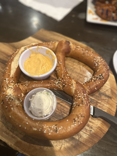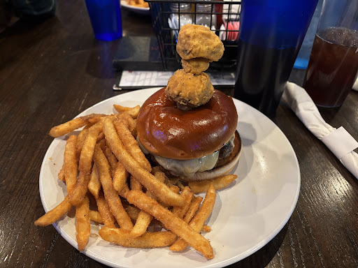 Ā Ā Ā Read moreWe were seated right away but with the size of their dining room we ended up very close to the front door. So just a heads up that if you go when itās 8° outside youāll probably be cold during dinner. ;-) Itās Mother Natureās fault. Tons of TVās if youāre here to also catch a game! Our waiter took about 10 minutes to initially stop by our table but was pretty solid after that, cleaning up plates and grabbing refills periodically. Even split our bill when we asked without complaint. There are a boatload of choices on the menu! If you canāt find something that sounds good, you probably should have stayed home. From the prime rib sandwich to the pretzel bunned grilled cheese and my mushroom and Swiss STUFFED burger, most everything was delicious! My stuffed burger came with two fried mushrooms stabbed into the bun - super awesome surprise! Burger was great. My wifeās 1356 chicken deluxe sandwich was just āokayā according to her. Our friends enjoyed their meals. We all agreed that the seasoned fries are a different experience than we expected. There is a sweetness in the seasoning that we didnāt expect; weād probably just get regular fries or even tots next time. Iād gladly go back, though likely on a warmer day. They have lots of great sounding things elsewhere on the menu so I know Iād find something...