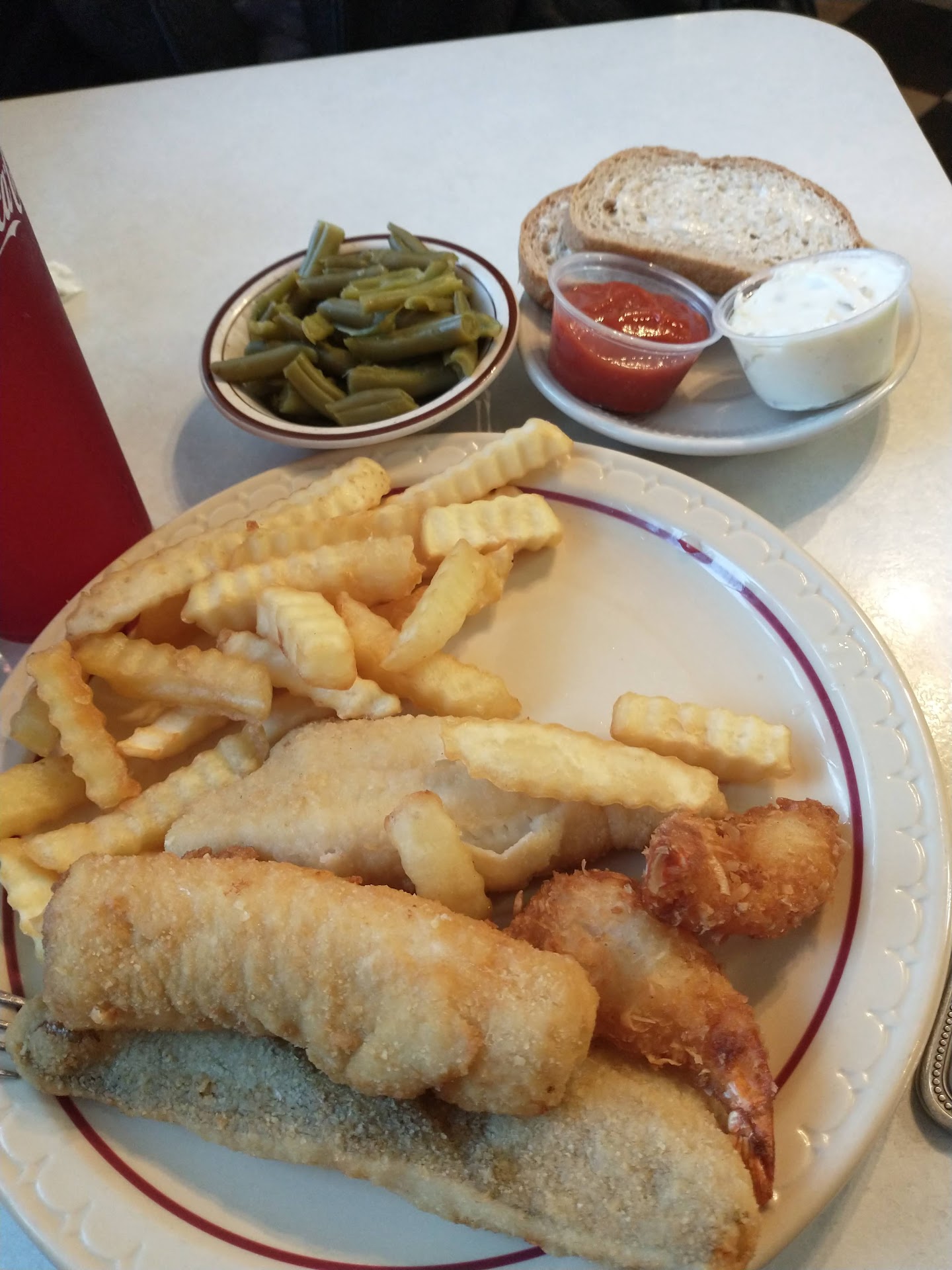 We were looking for a place to grab a soup & sandwich (BLT) on our way home from camping and found this place listing homemade soups! Our experience here was... interesting. If you've ever been in Ed Debevic's in Chicago, I thought we were walking into the small town version of that, but nope it was real life. We walked in to this small little diner that was not busy, 2 tables & 1 other person at diner, and awkwardly, no one said a word to us. We seated ourselves at the diner stools, looked through the menu, and shortly the young waitress (wish we got her name, because she was excellent) asked if we were ready to order. She was very kind & attentive, and made & delivered excellent food - BLT, homemade clamchowder soup, coleslaw, and a large piece of cheesecake! There was a lot of bickering & grumbling going on behind the counter between the other 2 waitresses (1 being the owner), maybe this is normal for the locals, but it was a bit off-putting for when you're just trying to chill and enjoy your lunch. Overall great food & our waitress...
