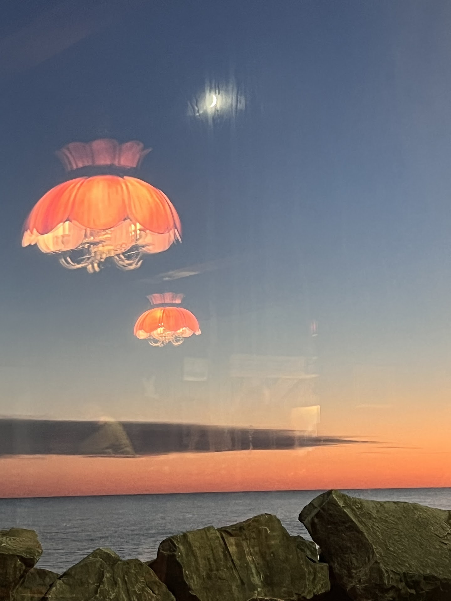 My husband and I came to enjoy the view of the water. This was our first visit here. The waitress seemed to be in a rush to get us out of there. Our food came before we even finished our appetizers. She asked if I needed a box when I was only 1/2 done eating my dinner. I needed to use the restroom so I told her yes I would need a box. She knew I was getting up to use the restroom. I was expecting to come back to an empty box for when I was finished eating. Most places just have the customer put leftovers in the box themselves when they are finished eating. Instead I found all my food in the box with my plate and silverware gone! She had asked my husband if he wanted dessert while I was gone and he said no. She didn't even wait to ask me if I wanted anything else and just plopped down the bill and left. I had to flag her down to even get the tartar sauce I was not allowed to finish. She never asked if we wanted another drink or even if we wanted more water. After one bite asked if food was ok and that was it. The shrimp was good but the fish was very bland without much flavor. She never asked about the food again, just came back to ask if I needed a box. We wanted to sit and talk and enjoy the view but felt completely rushed to leave the table. It wasn't even that busy yet so its not like they "needed" the table. My husband felt bad he didn't stop her from packing up my food before he knew if I was truly done or not. It really put a damper on our evening. He left only a $5 tip and was not happy. Neither was I. I left still hungry but with no way...